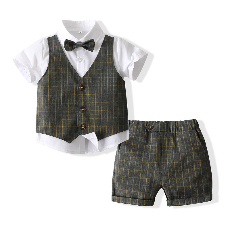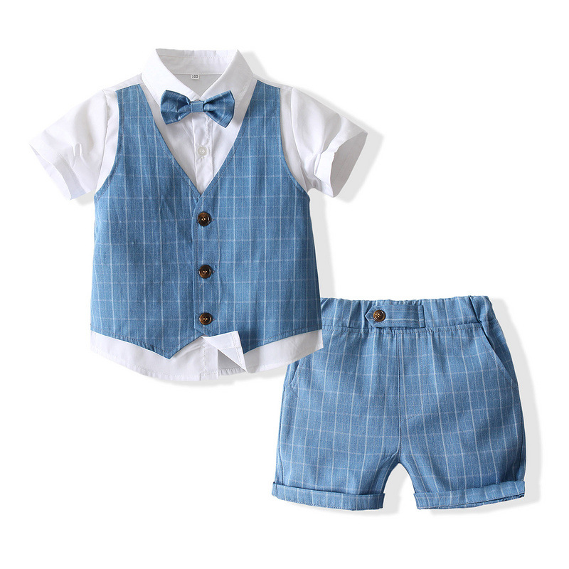 학교 시즌 소년 한국 스타일 작은 정장 여름 새로운 어린이 반팔 셔츠 가짜 조끼 졸업 드레스 어린이 정장스토어 가기