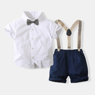 학교 시즌 소년 한국 스타일 작은 정장 여름 새로운 어린이 반팔 셔츠 가짜 조끼 졸업 드레스 어린이 정장