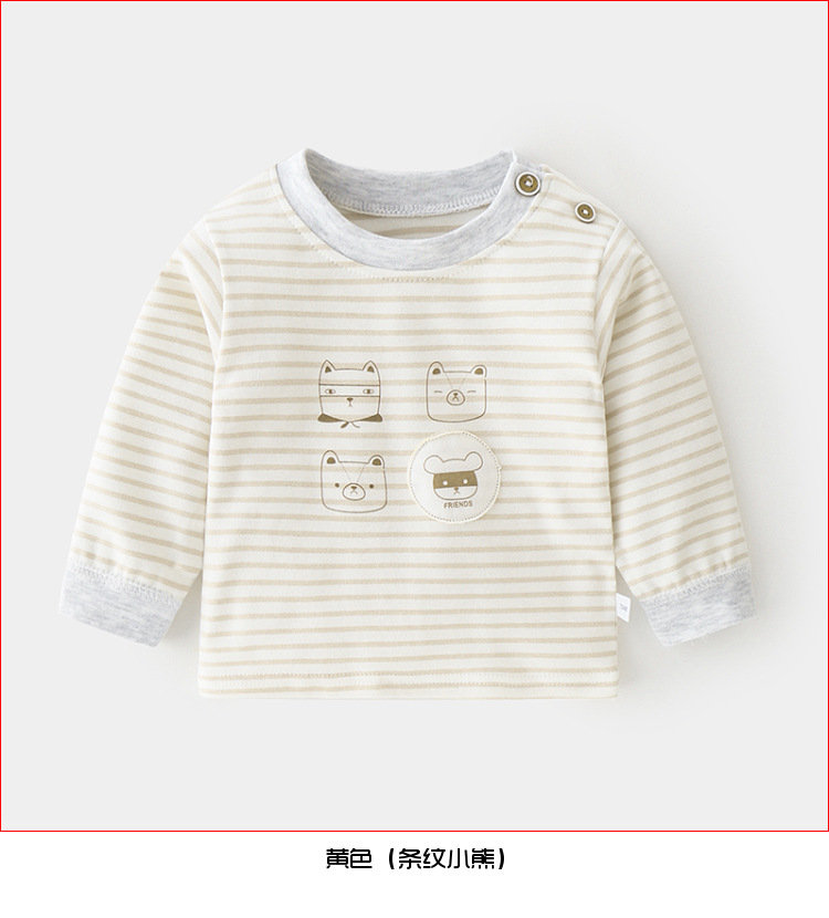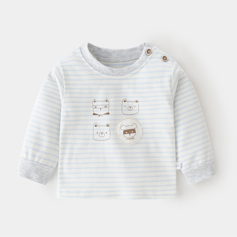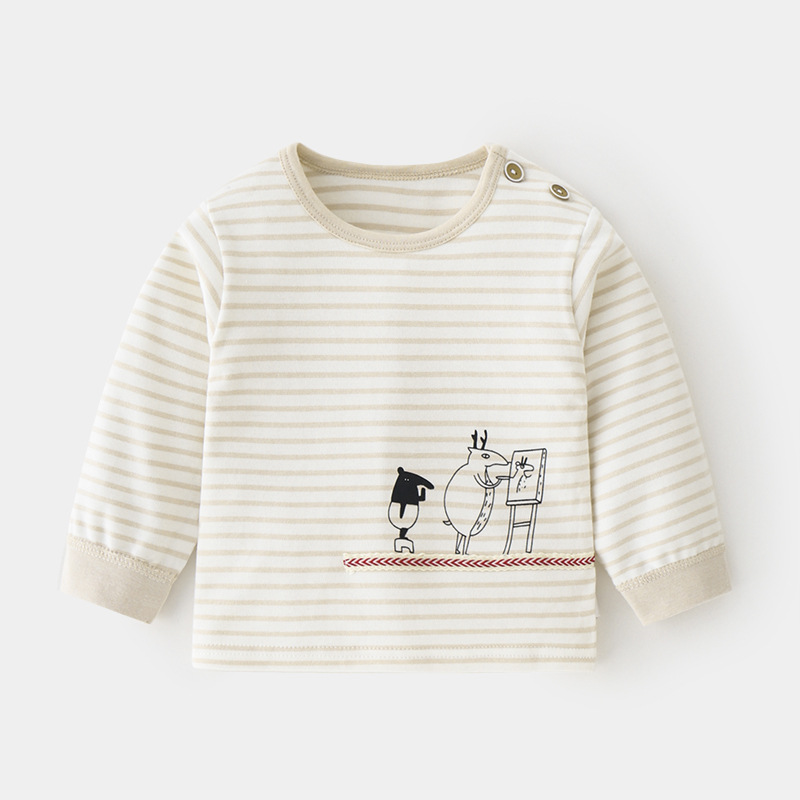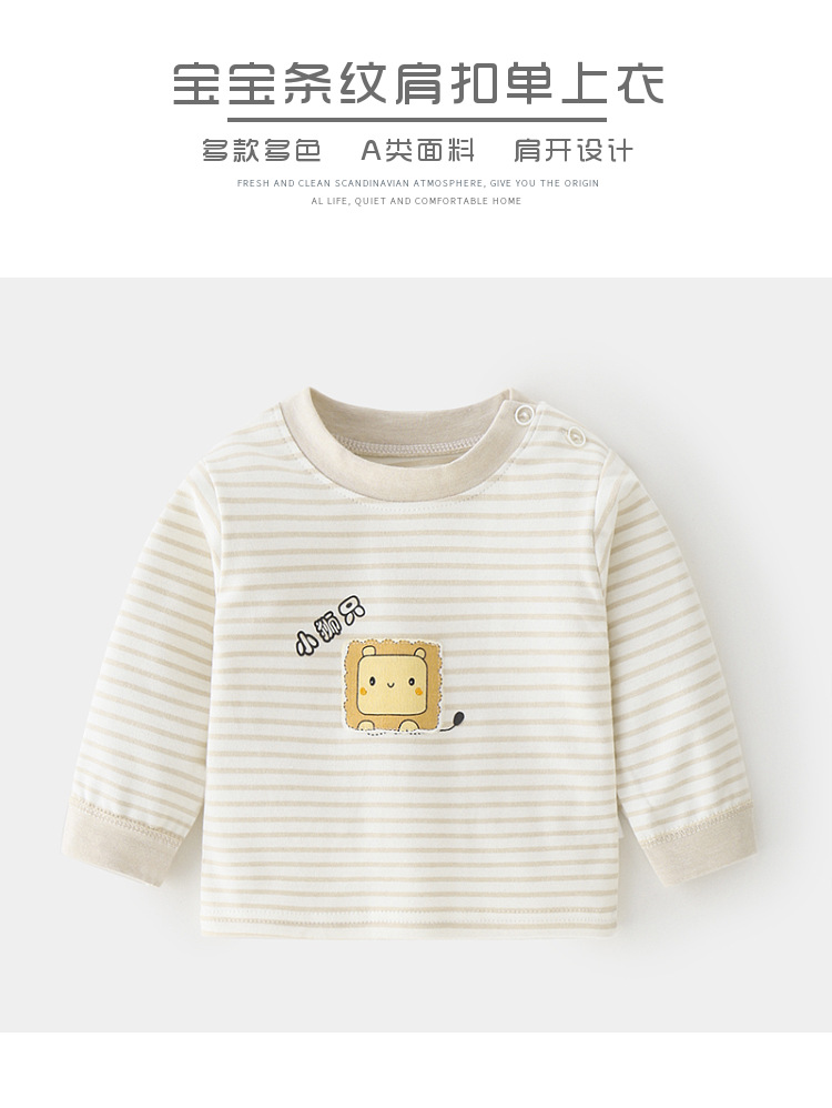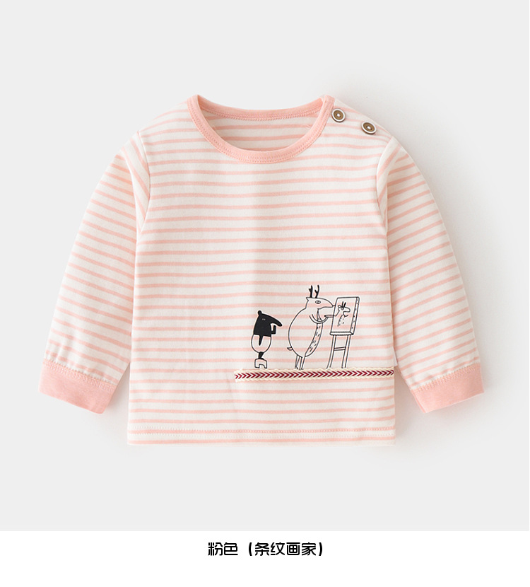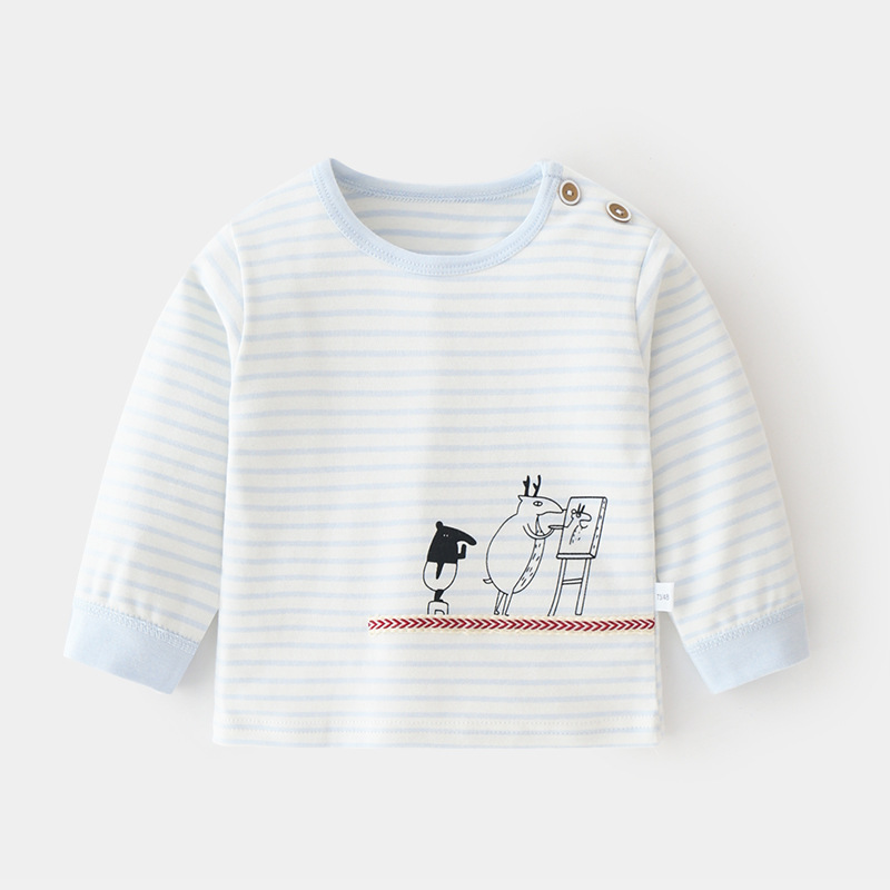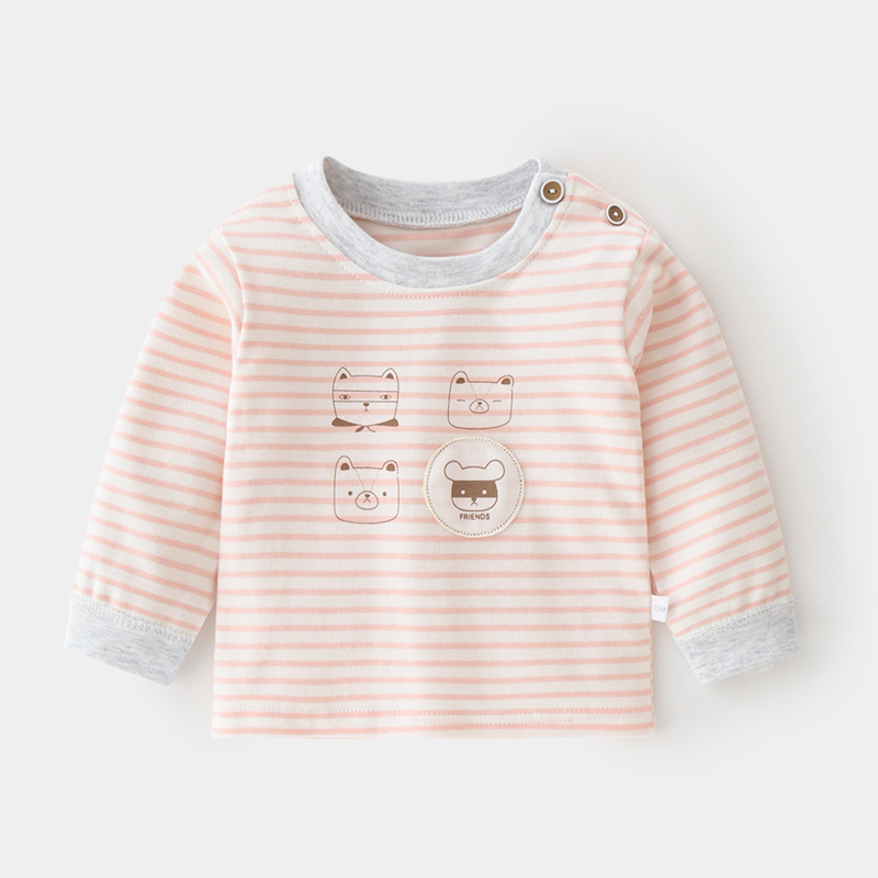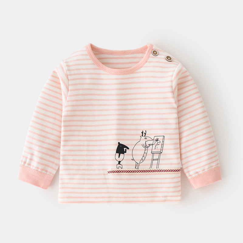 아기 순면 단일 가을 옷 스트라이프 봄과 가을 아기 속옷 베이스 셔츠 어린이 어깨 오픈 티셔츠스토어 가기