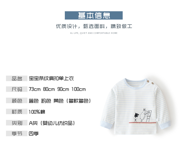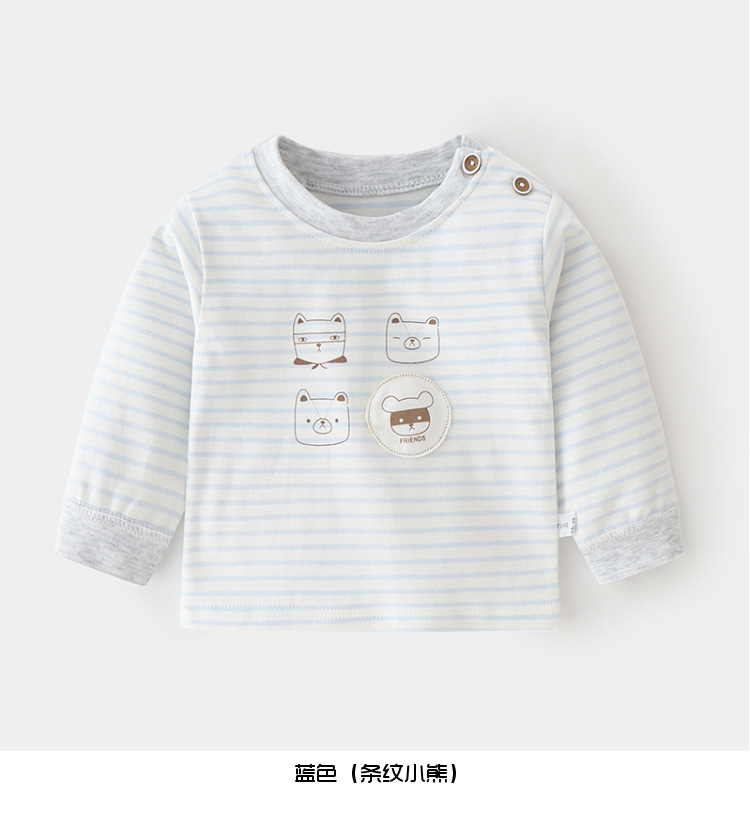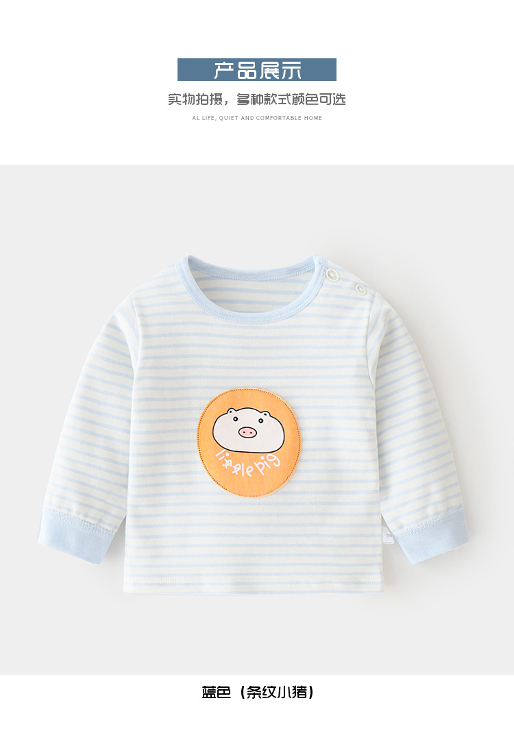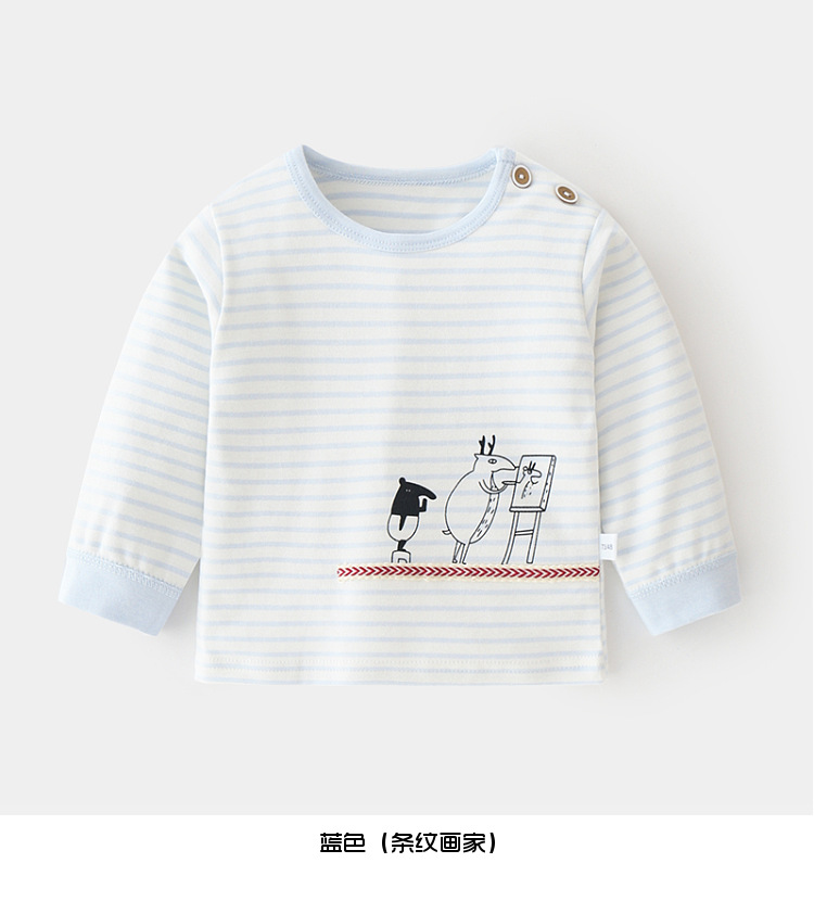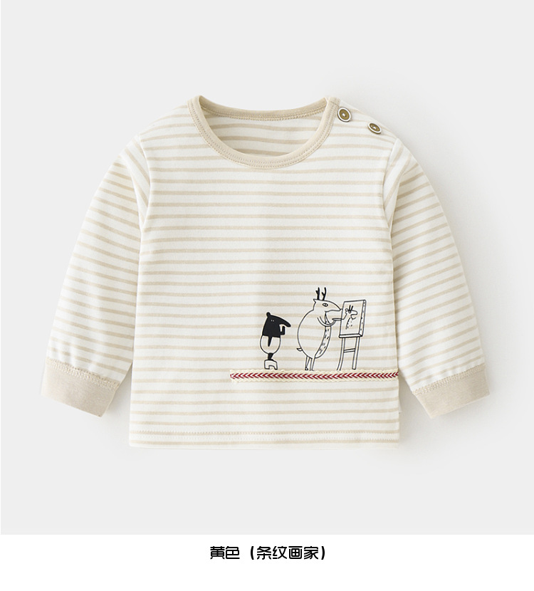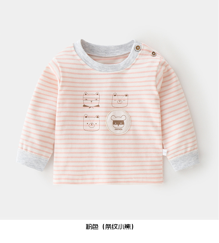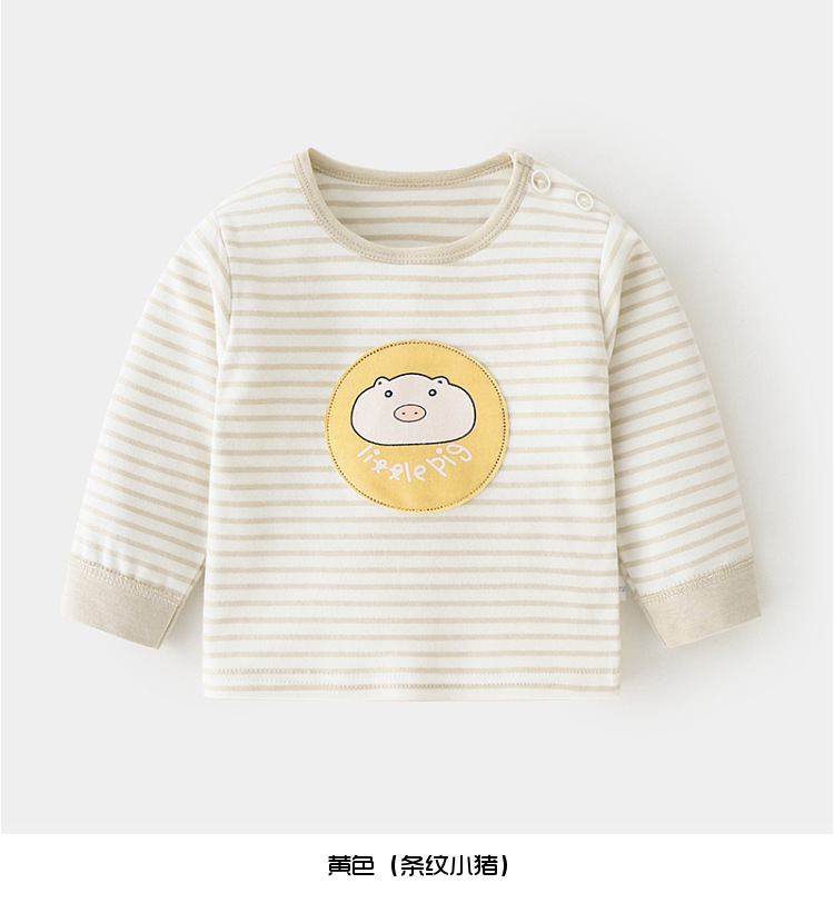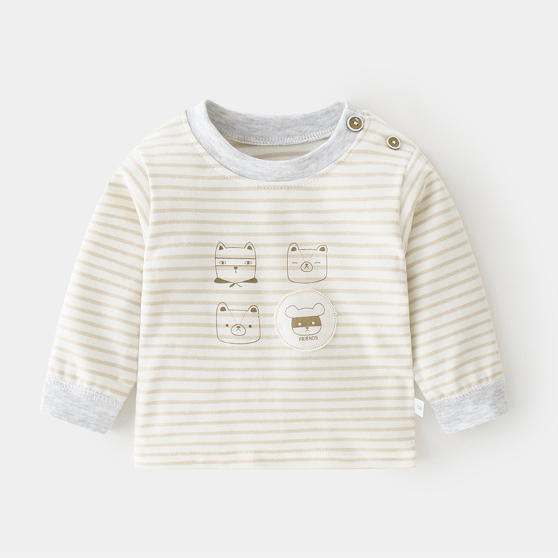 아기 순면 단일 가을 옷 스트라이프 봄과 가을 아기 속옷 베이스 셔츠 어린이 어깨 오픈 티셔츠스토어 가기
