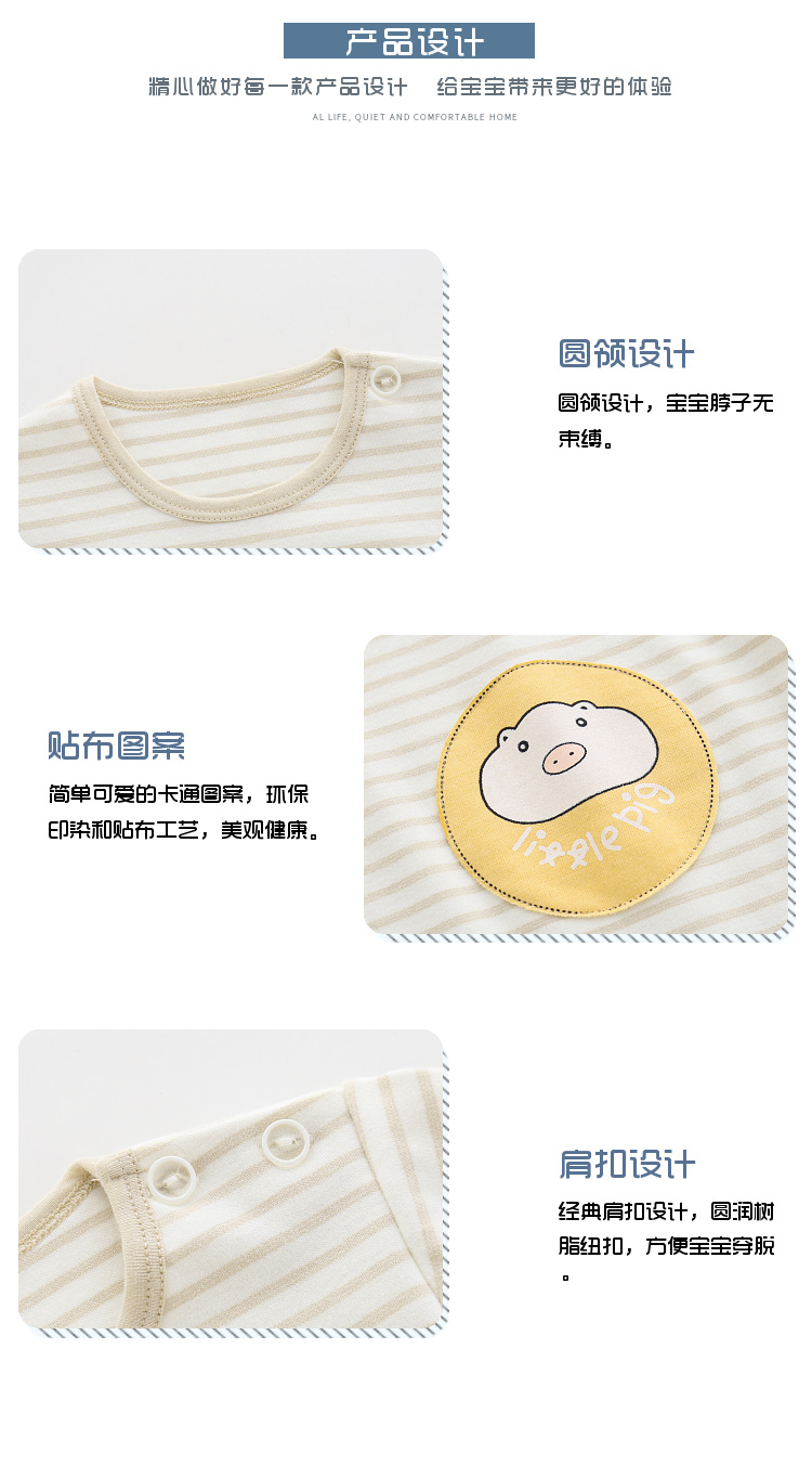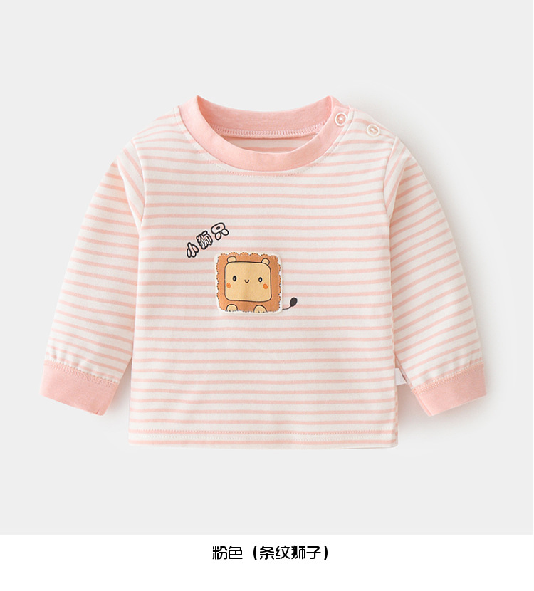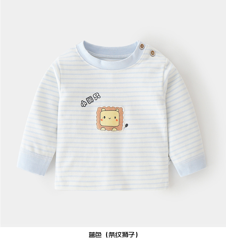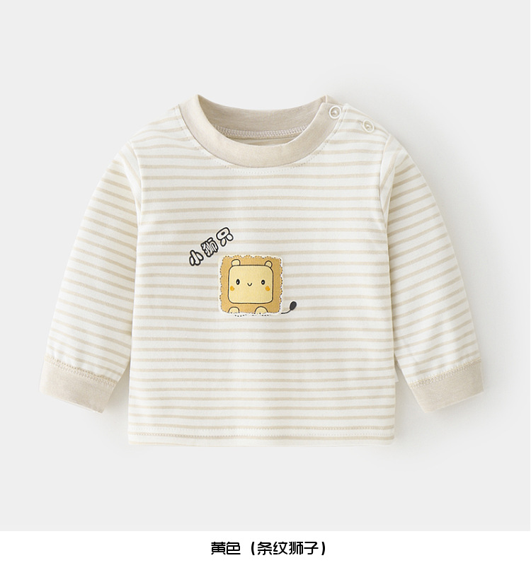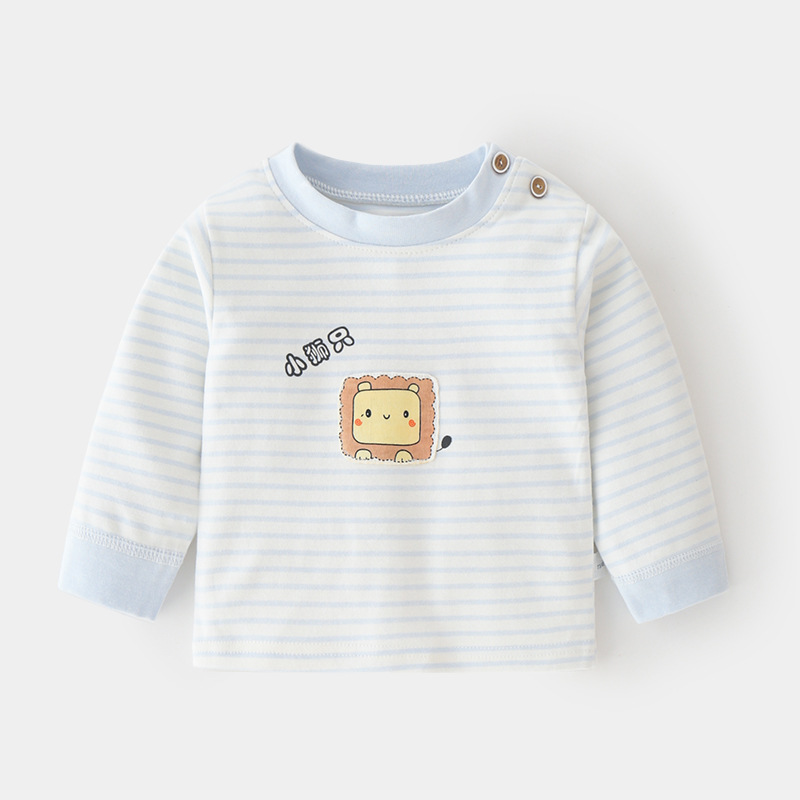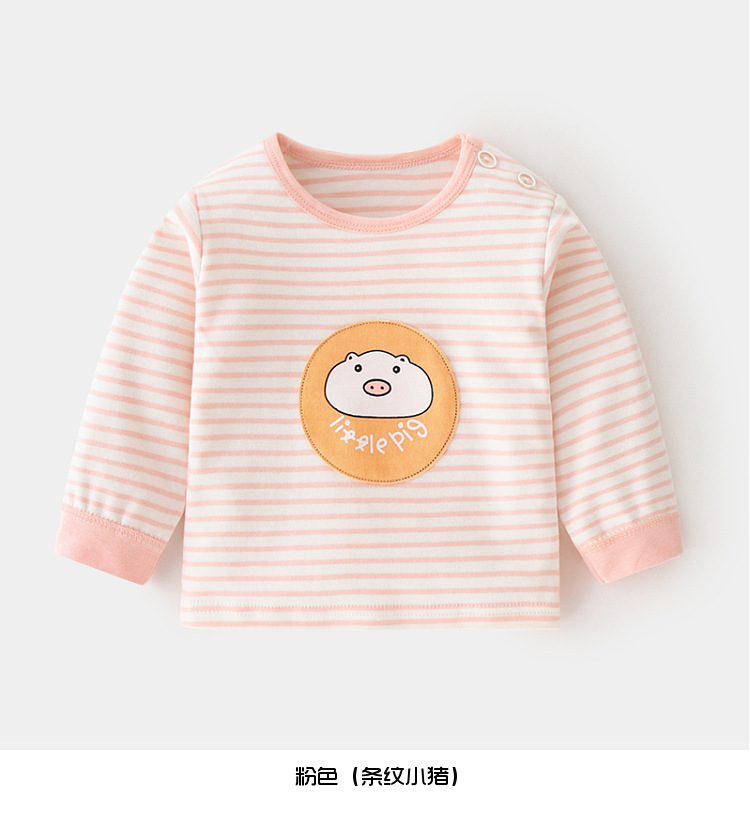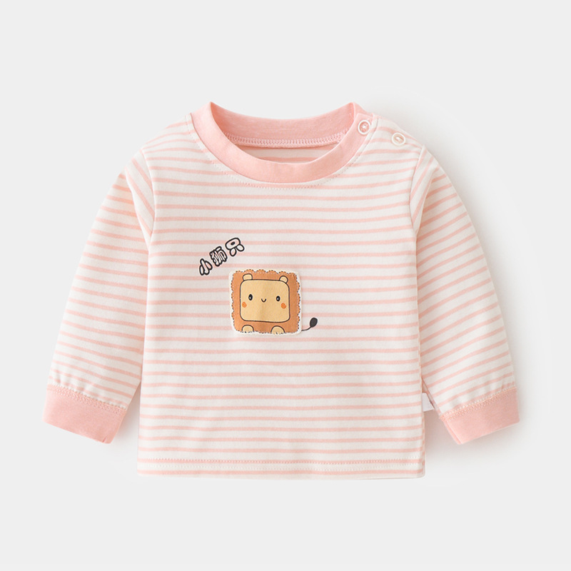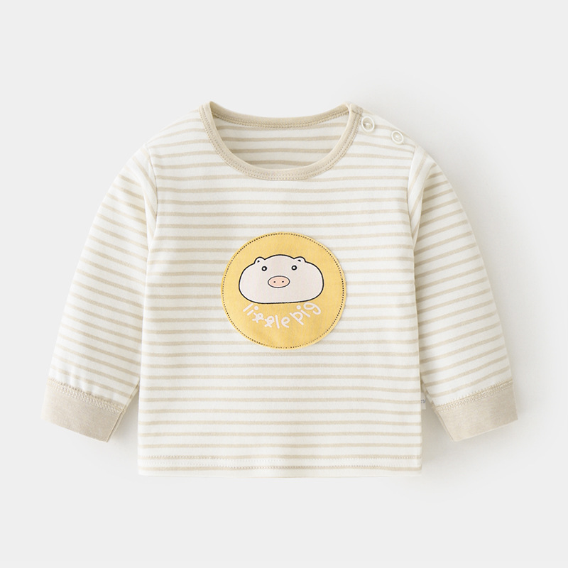 아기 순면 단일 가을 옷 스트라이프 봄과 가을 아기 속옷 베이스 셔츠 어린이 어깨 오픈 티셔츠