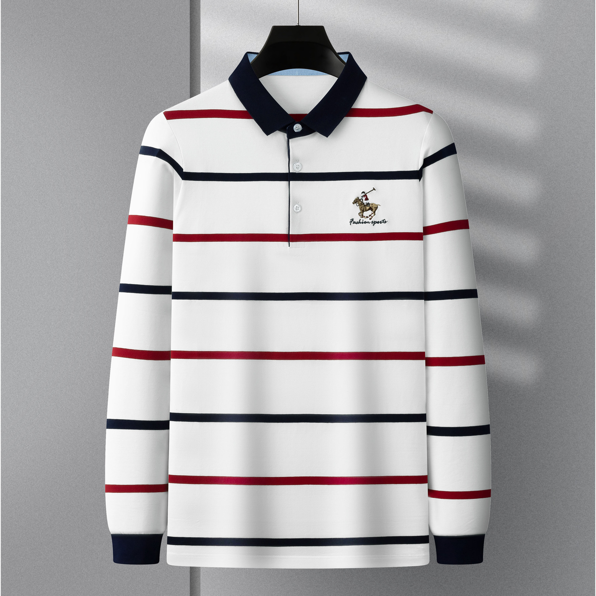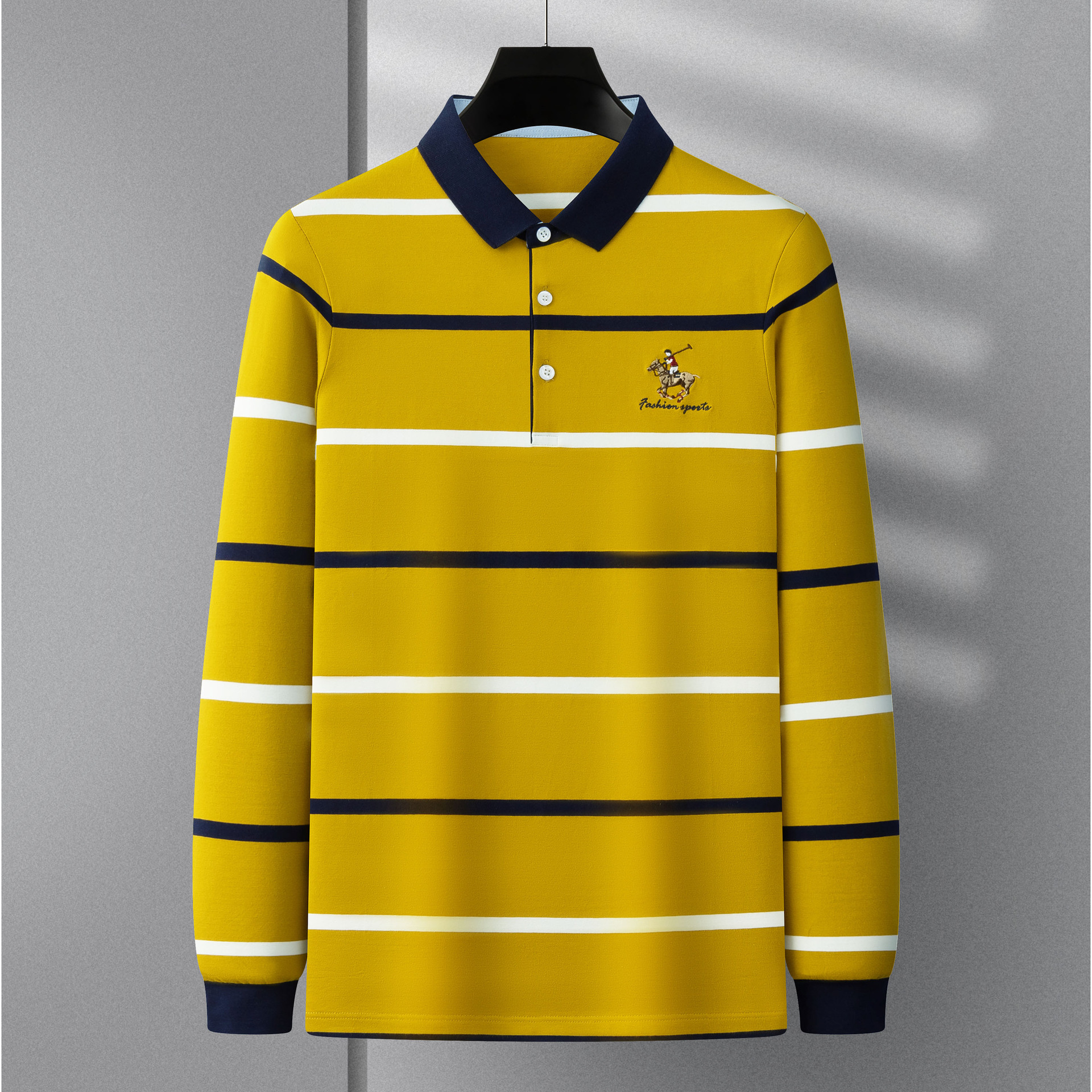 Shenglipa 남성 가을 탑 티셔츠 남성용 라펠 코튼 비즈니스 긴팔 스트라이프 캐주얼 중년 남성 티셔츠