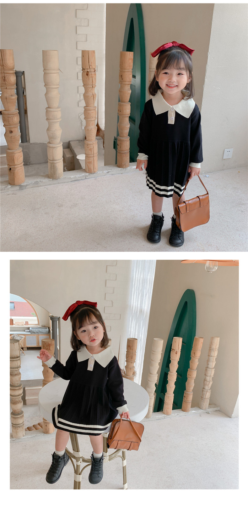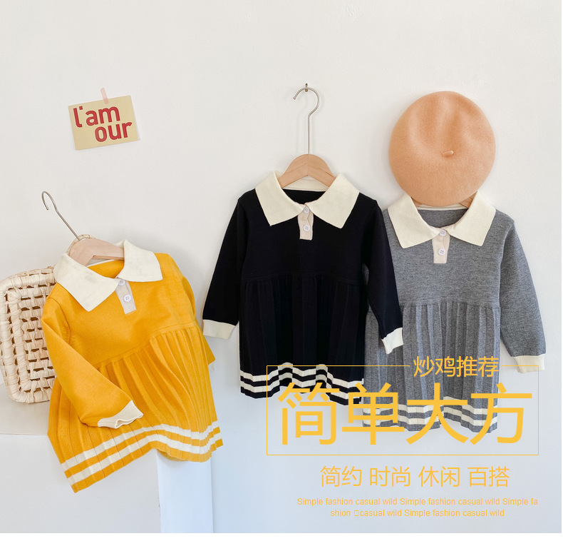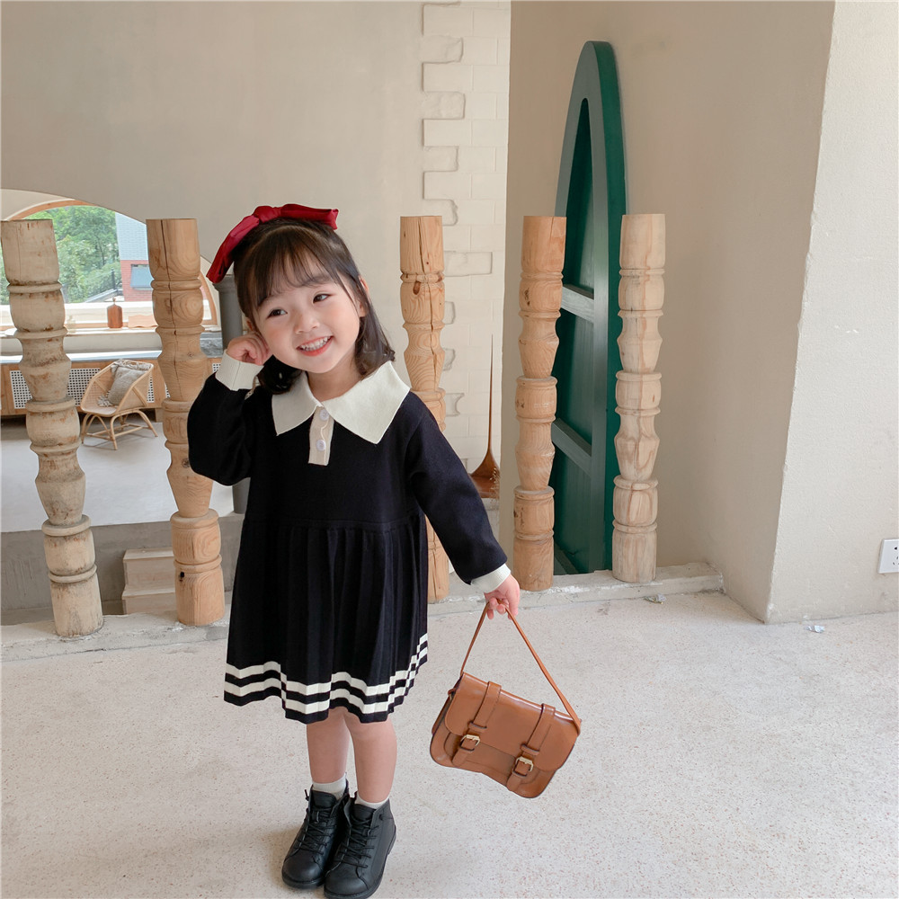여자 원피스 한국 아동복 2024 봄 소녀 모직 원피스 아기 모직 원피스 중형 롱 프린세스 인형스토어 가기