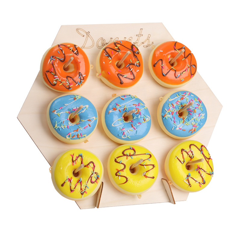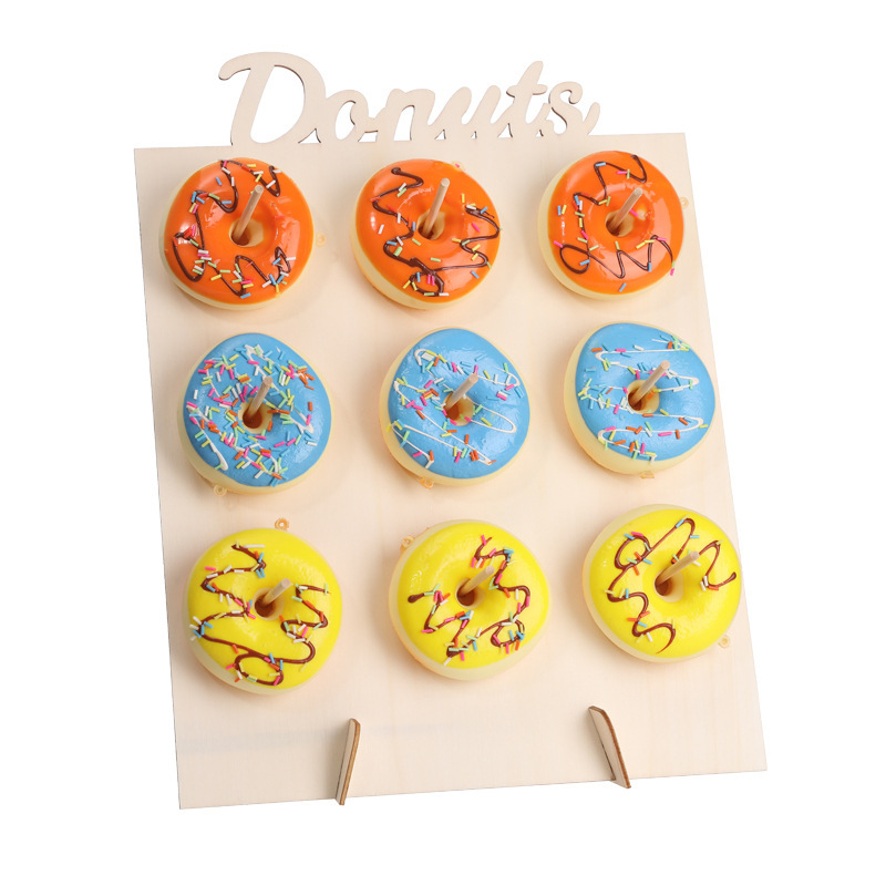나무 도넛 랙 웨딩 용품 어린이 베이비 샤워 축제 홈 공예 장식품 생일 파티 장식