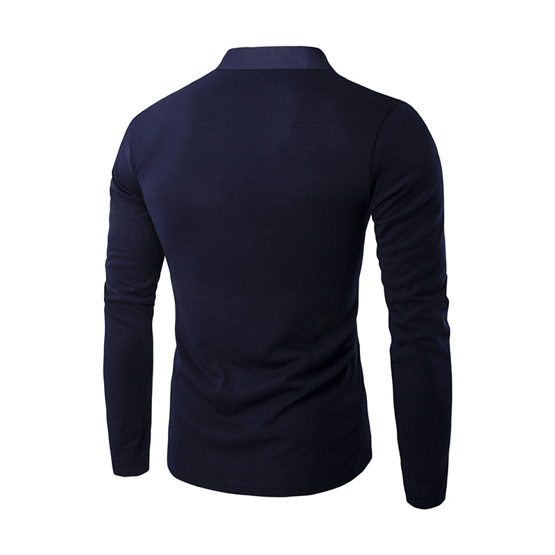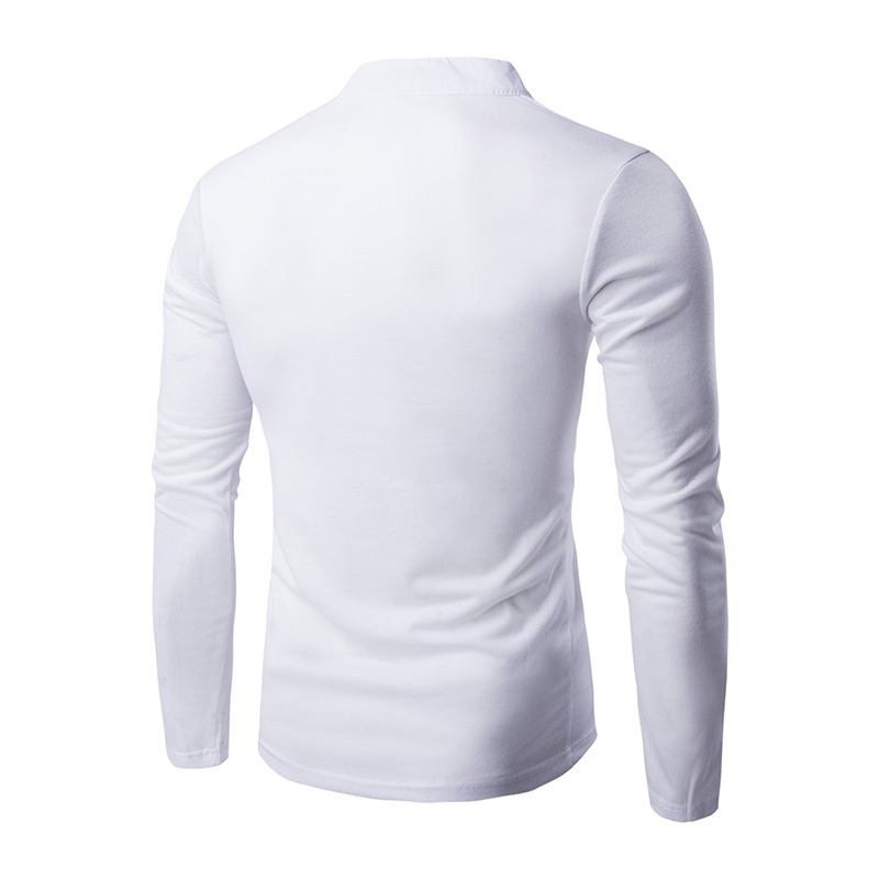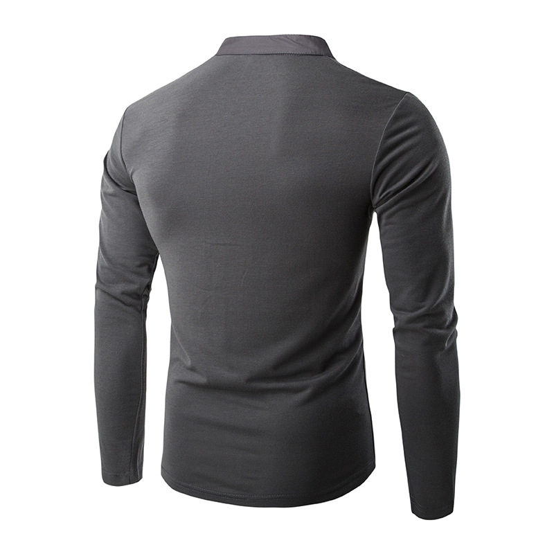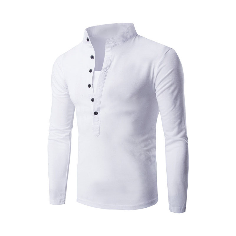 2022 대외 무역 새로운 남자의 단색 스탠드 칼라 캐주얼 버튼 플래켓 슬림 긴 소매 티셔츠