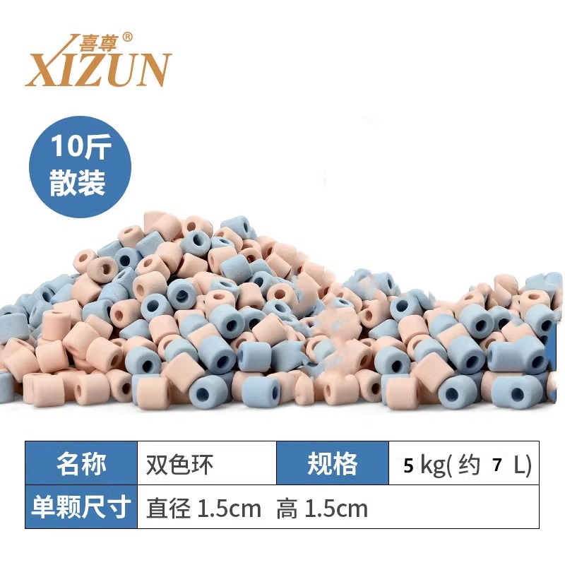 Xizun 더블 컬러 링 어항 필터 재료 세균 재배 물 정화 질화 세균 하우스 세라믹 링 어항 필터 재료
