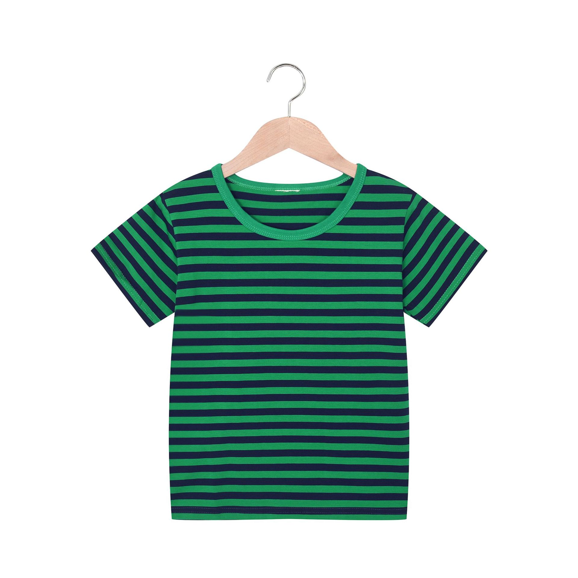 신강 코튼 블루와 화이트 스트라이프 패밀리 원피스 크루 넥 반팔 티셔츠 어린이 소울 셔츠 남녀 순면 반소매 티셔츠 트렌디스토어 가기