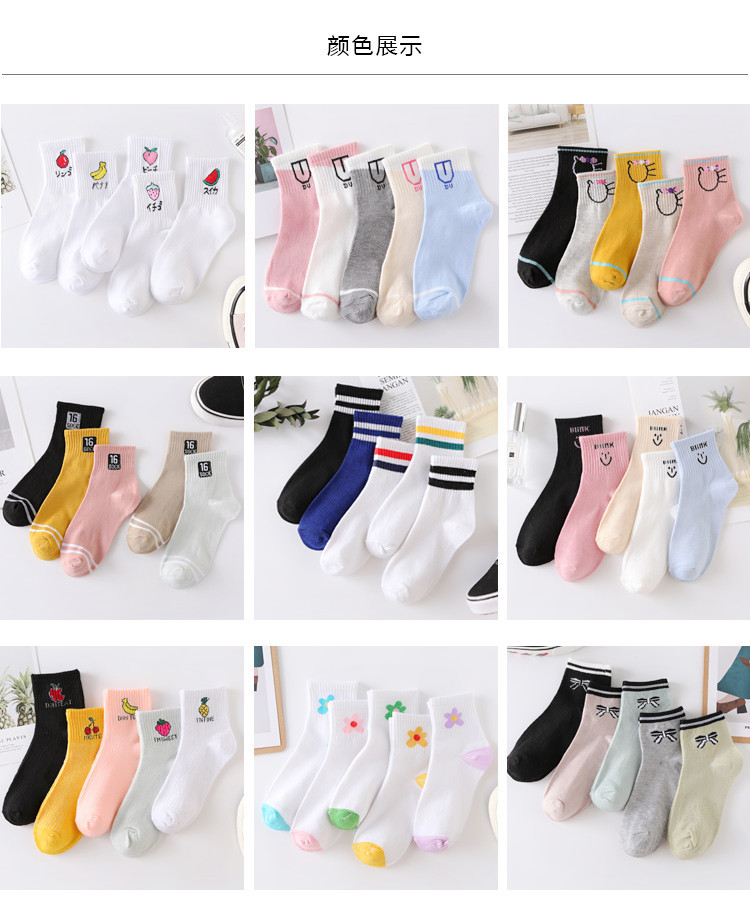 봄 여성의 새로운 양말, 트렌디 한 만화 편안한 중간 종아리 길이 양말 거리 일본식 여성 양말 공장 도매