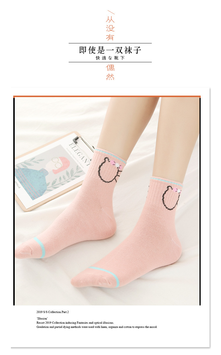 봄 여성의 새로운 양말, 트렌디 한 만화 편안한 중간 종아리 길이 양말 거리 일본식 여성 양말 공장 도매스토어 가기