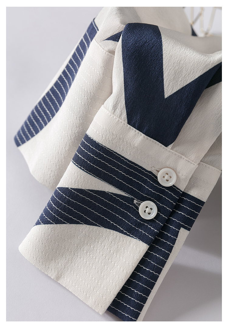 미친 사랑! 좋은 상품 분위기 유행! 대비 스트라이프 헤비 실크 칼라 슬림핏 루즈한 여름용 긴팔 셔츠