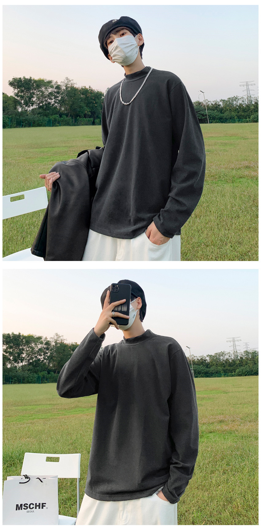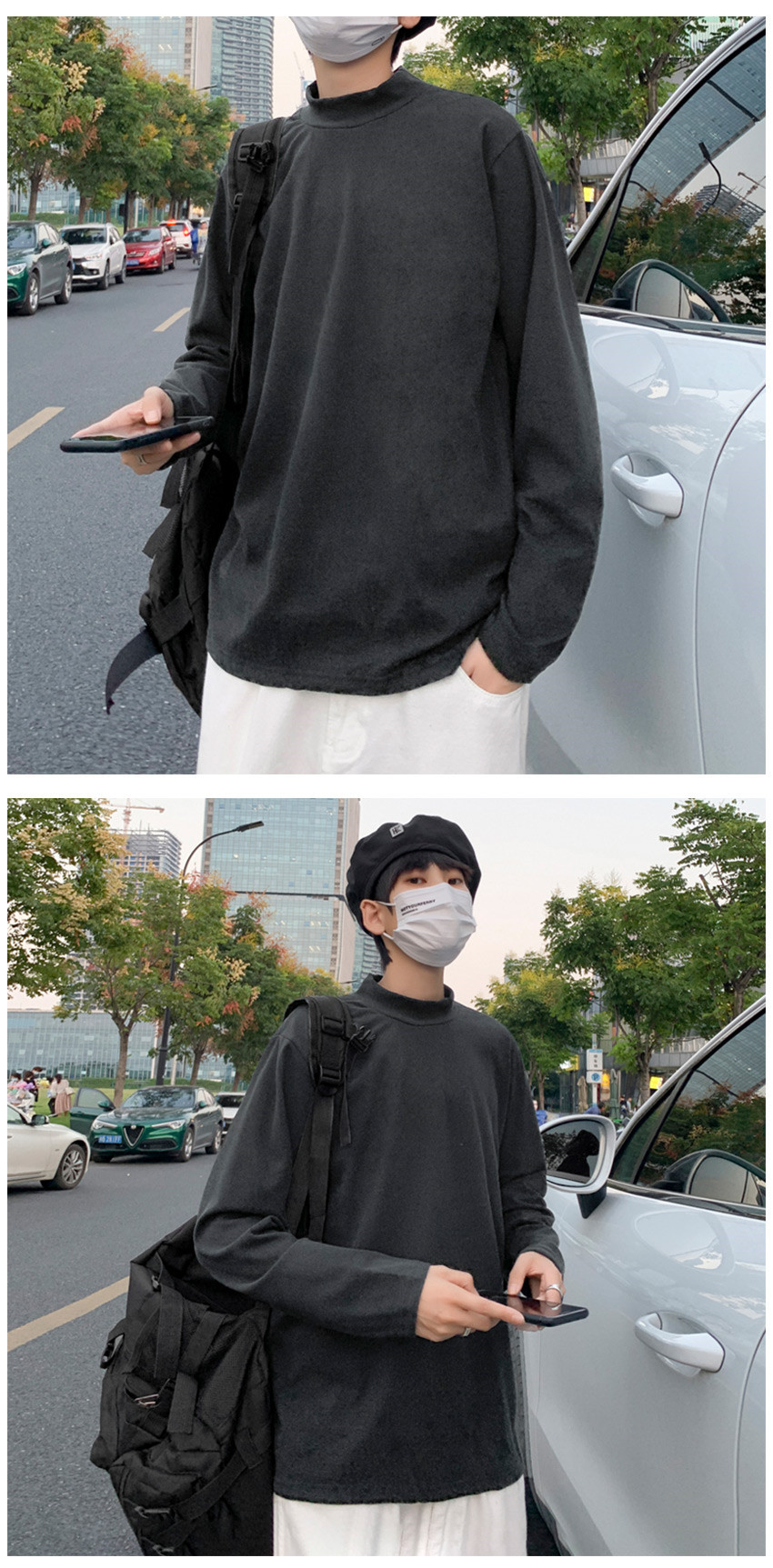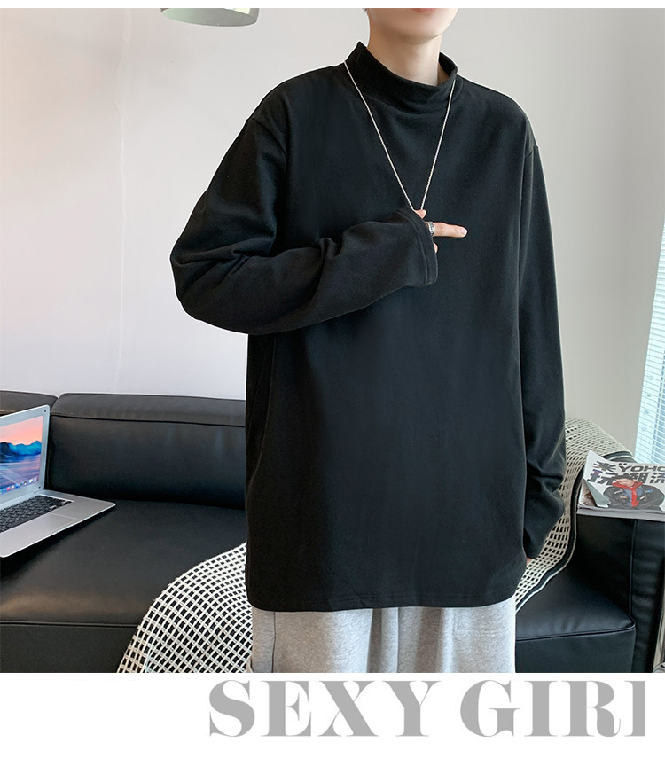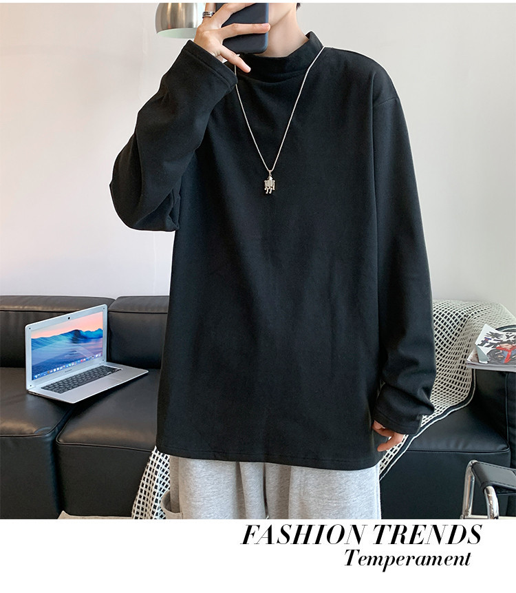 독일산 벨벳 긴팔 티셔츠 남성용 봄 가을 블랙 단색 이너웨어 반하이넥 겨울 보온 한국 스타일 트렌디 브랜드스토어 가기