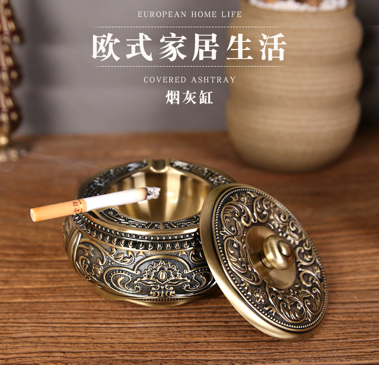 재떨이 창조적 인 성격 유행 가정용 거실 비행 방지 애쉬 바람 봉인 순수 구리 재떨이 커버 애쉬스토어 가기