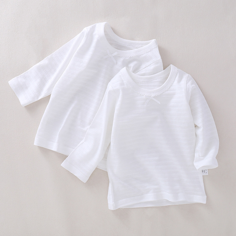 퓨어 화이트 네트 에디션 시리즈 슬러브 코튼 아동용 긴팔 티셔츠 무형광 라운드 넥 베이스 셔츠 0-5 세 가을 아동복