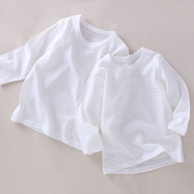 퓨어 화이트 네트 에디션 시리즈 슬러브 코튼 아동용 긴팔 티셔츠 무형광 라운드 넥 베이스 셔츠 0-5 세 가을 아동복스토어 가기