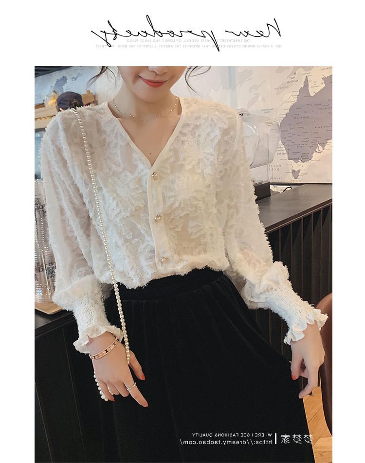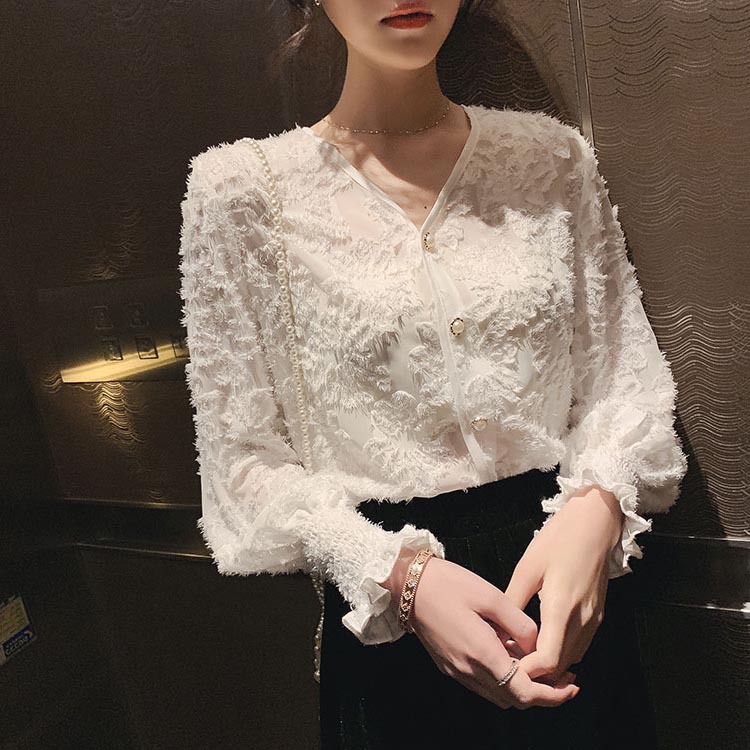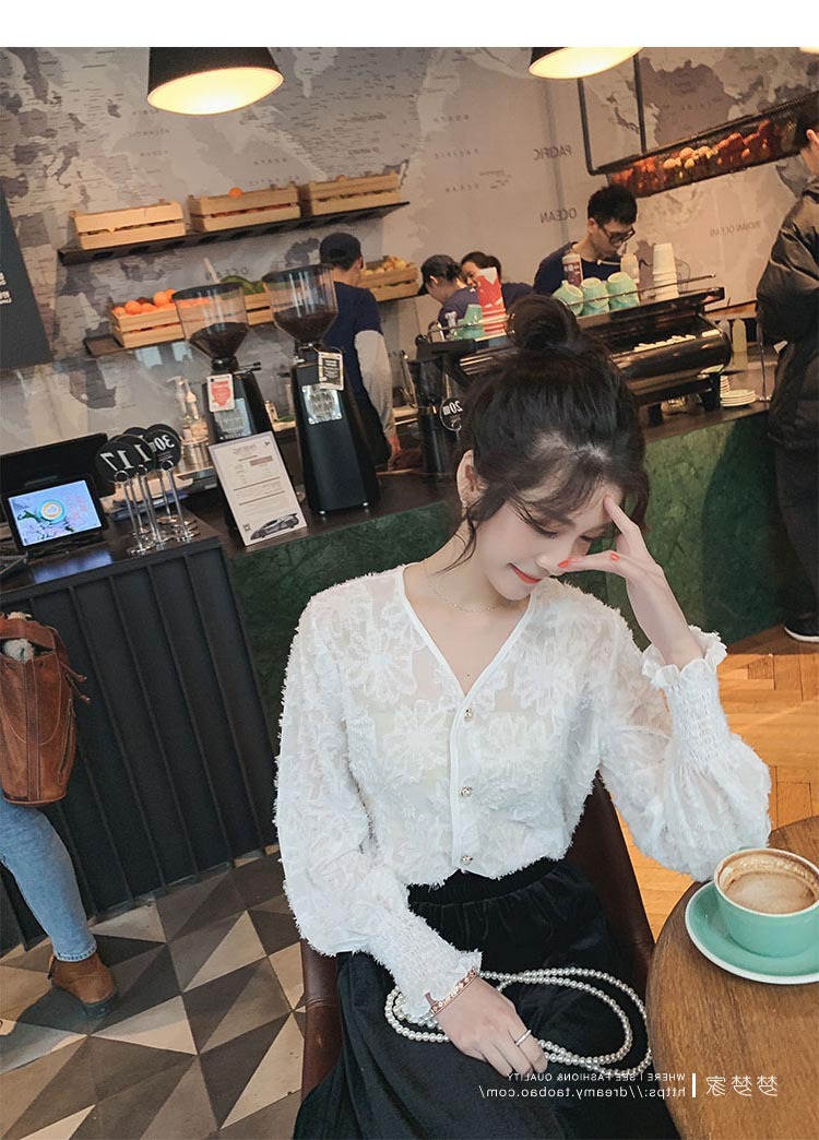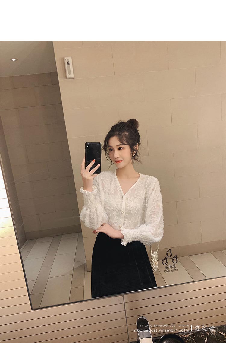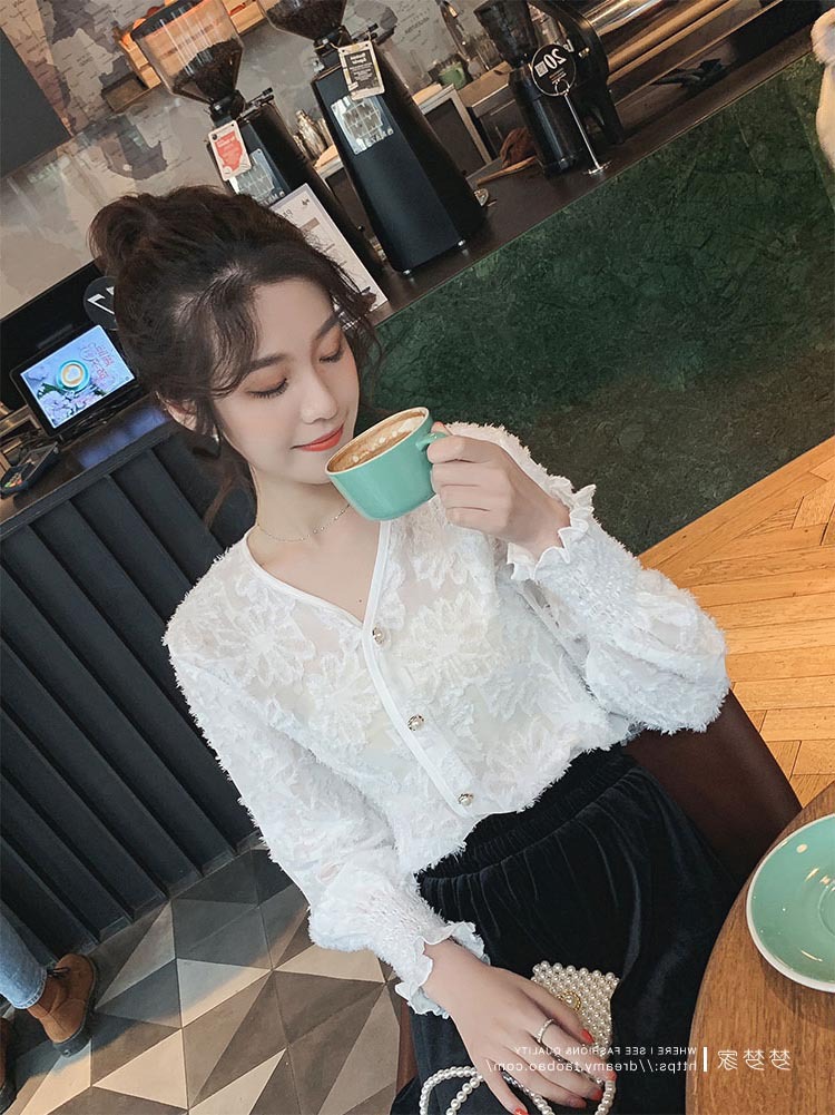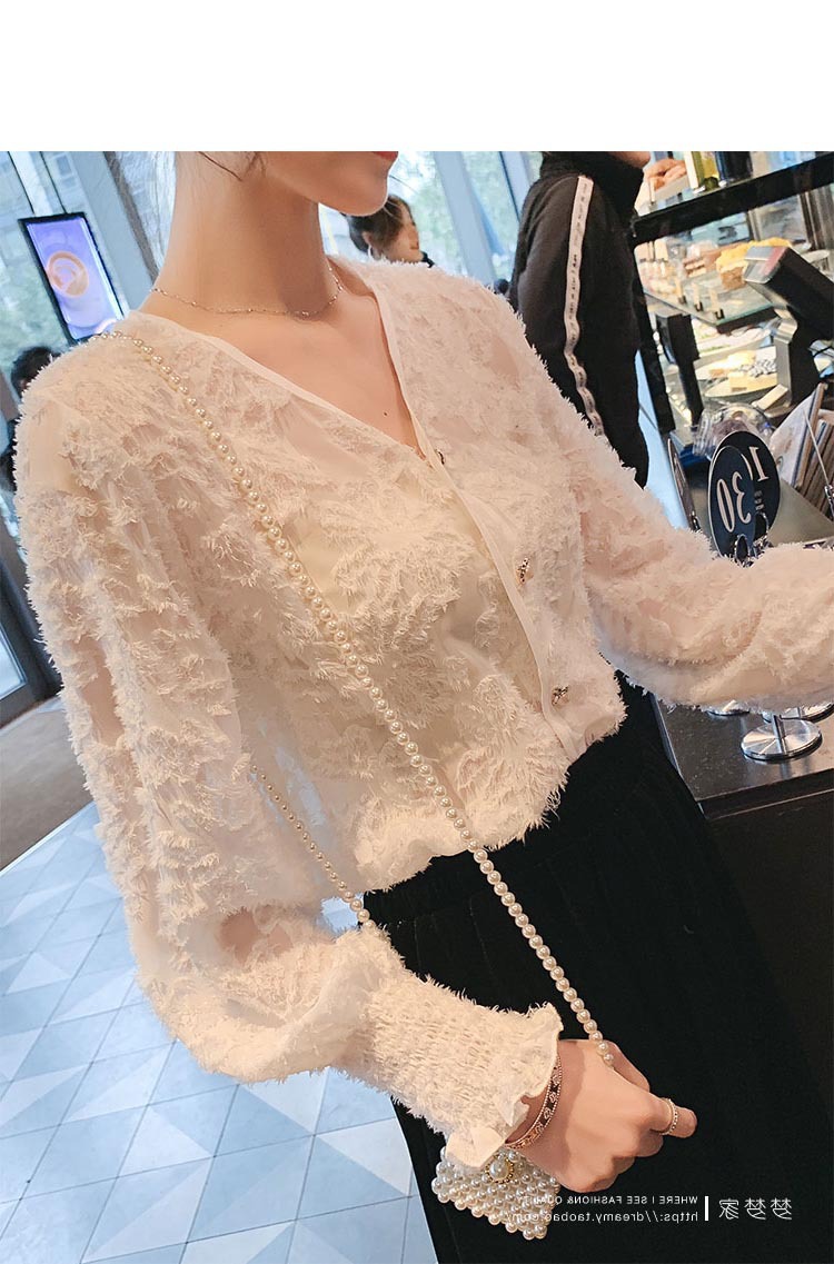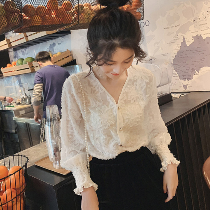 봄 새로운 디자인 감각 틈새 외국 스타일 올매치 긴팔 셔츠 여성용 슬림핏 외국인 우아한 레이스 페어리 탑스토어 가기