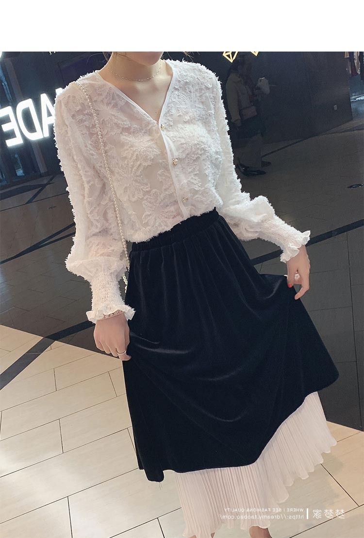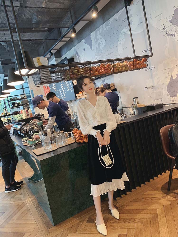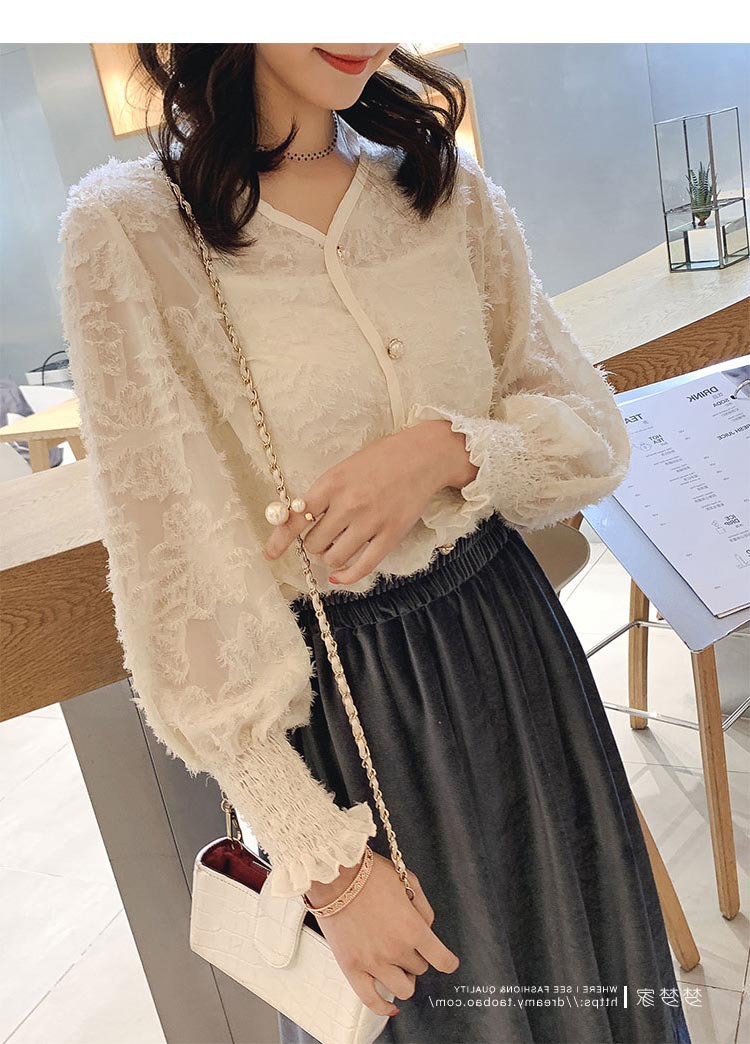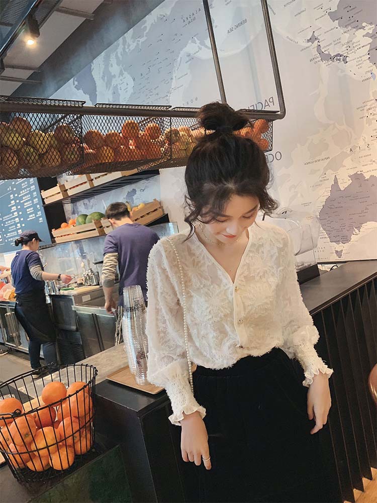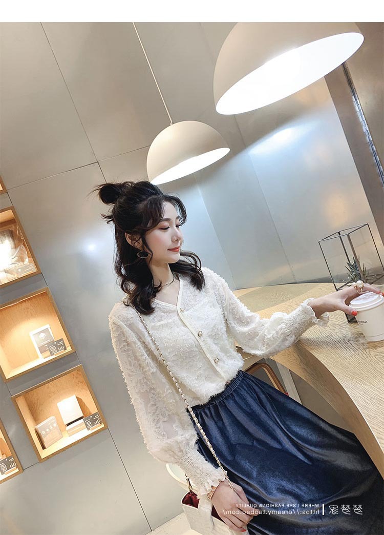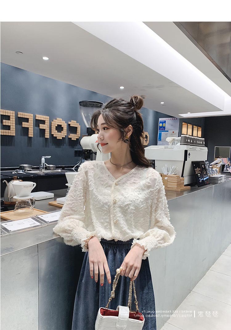 봄 새로운 디자인 감각 틈새 외국 스타일 올매치 긴팔 셔츠 여성용 슬림핏 외국인 우아한 레이스 페어리 탑스토어 가기