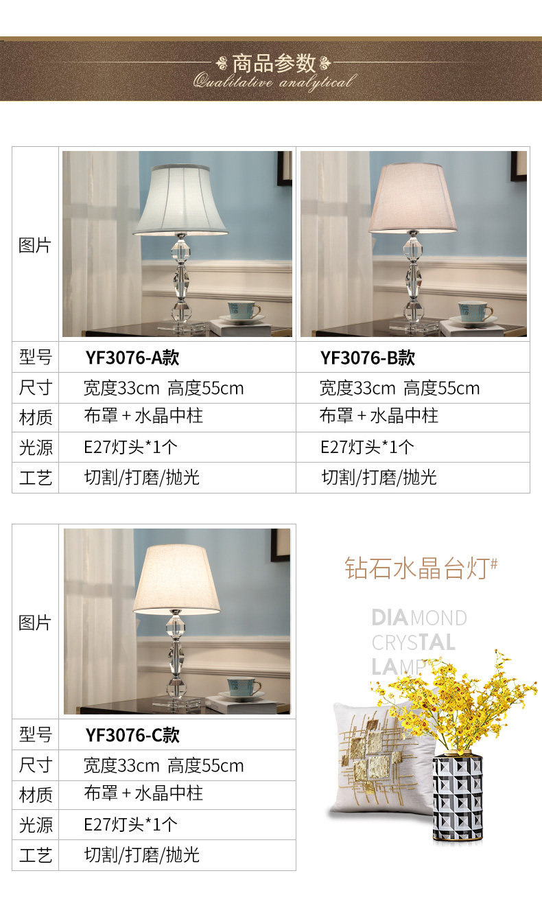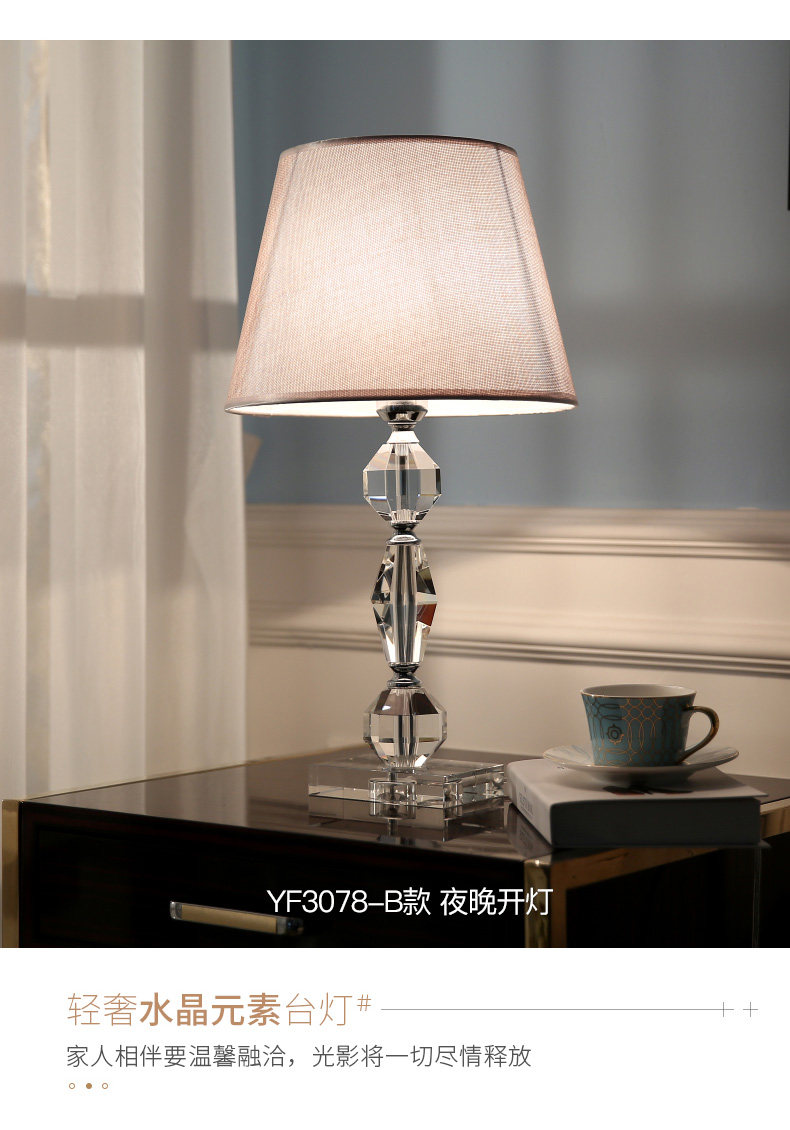 라이트 럭셔리 크리스탈 테이블 램프, 심플한 침실 침대 옆 램프, 유럽 스타일 거실 테이블 램프, 테이블 램프스토어 가기