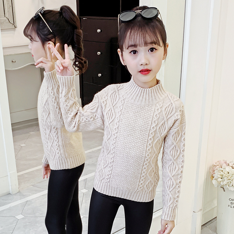여아 두꺼운 스웨터 새로운 겨울 봄과 가을 스트레치 빈티지 트위스트 니트 베이스 셔츠 하프 하이 칼라 두꺼운 스웨터 봄