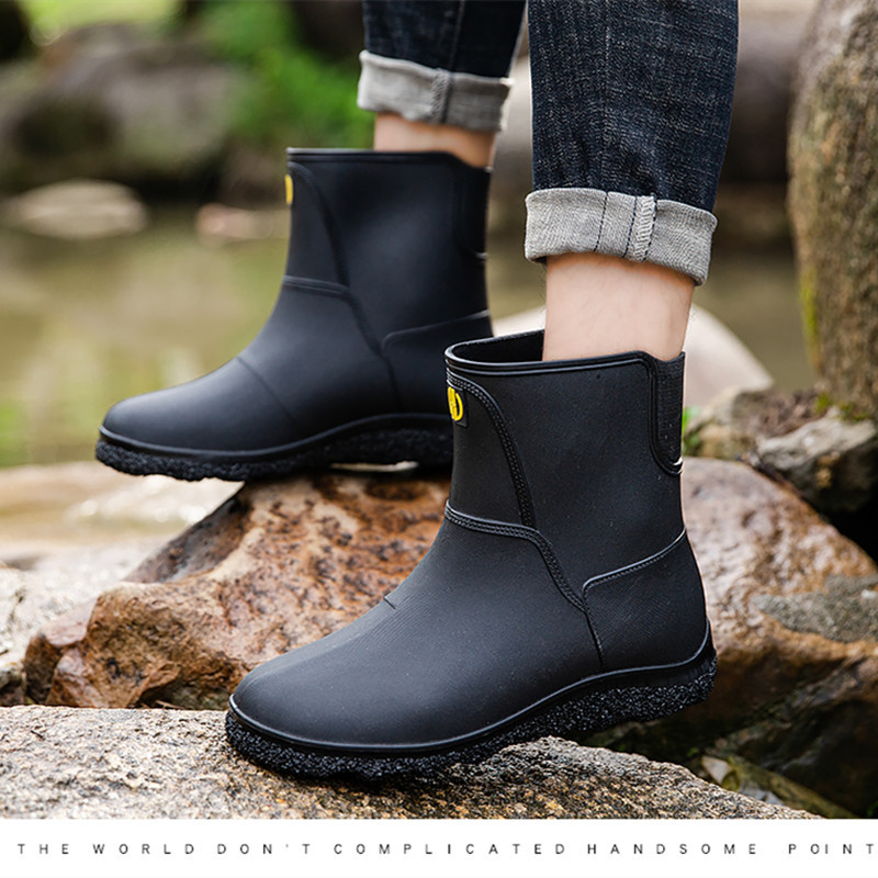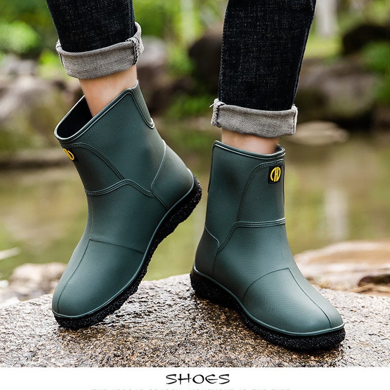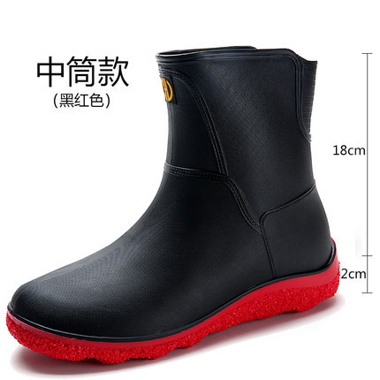 공장 직접 비 신발 남자의 중간 튜브 노동 보호 신발 레인 부츠 주방 미끄럼 방지 내마모성 기모 사이트 세차 물 신발스토어 가기