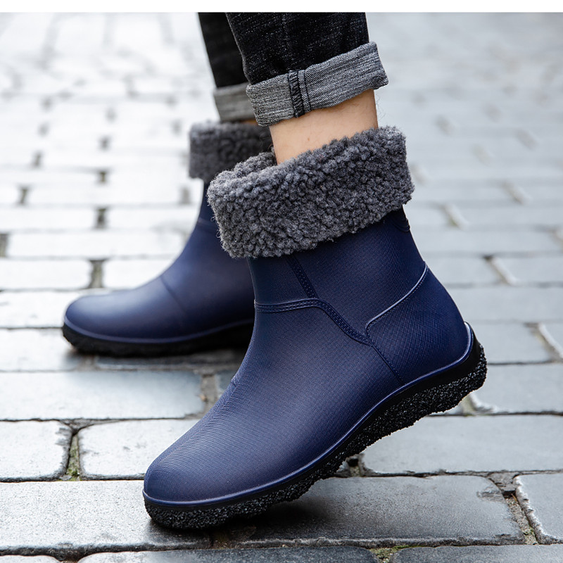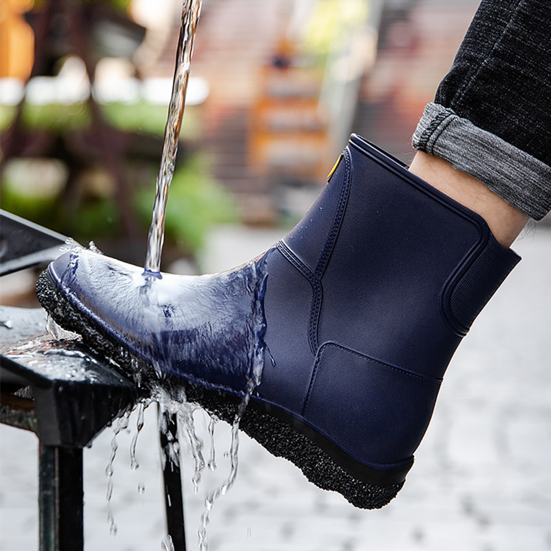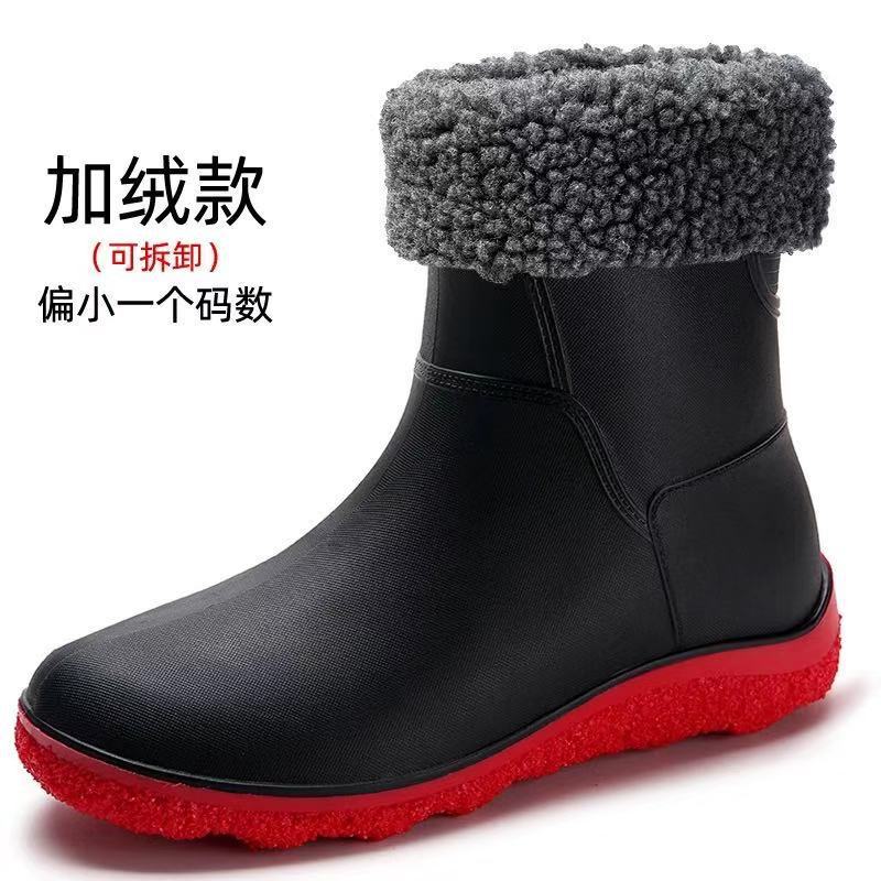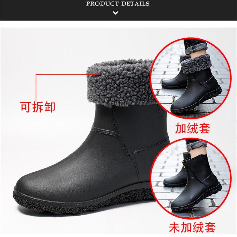 공장 직접 비 신발 남자의 중간 튜브 노동 보호 신발 레인 부츠 주방 미끄럼 방지 내마모성 기모 사이트 세차 물 신발