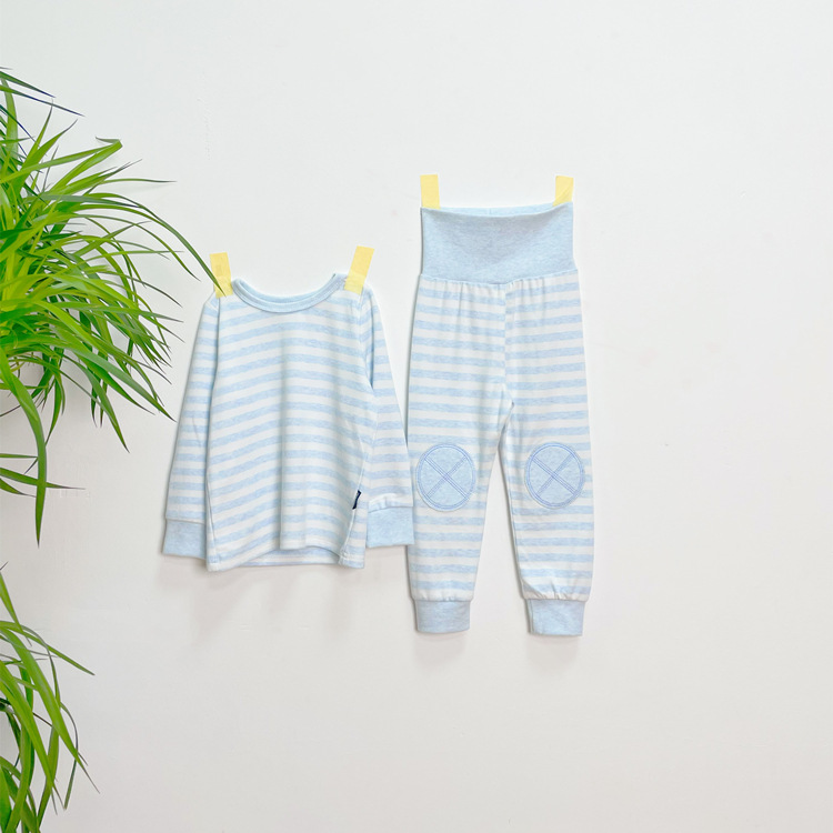 가을과 겨울 가정복 투피스 세트 2023 소년과 소녀 아기 하이 웨이스트 배 보호 속옷 어린이 스트라이프 잠옷 세트스토어 가기