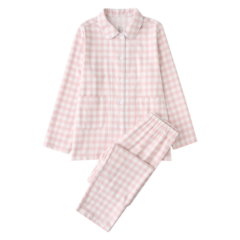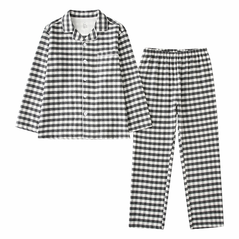 가을 겨울 커플 잠옷 순면 기모 남녀 세트 체크 무지 일본식 벨벳 홈웨어 보온