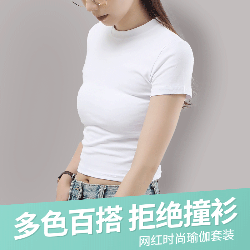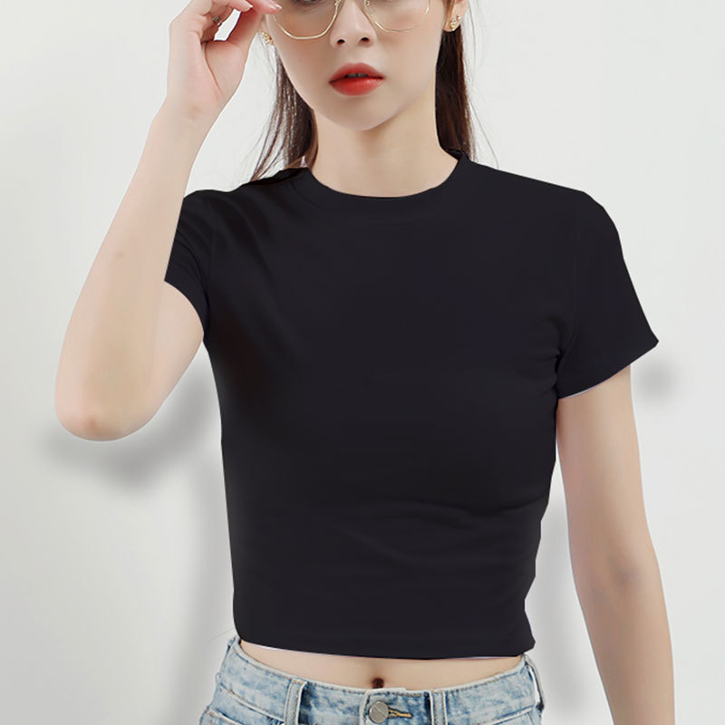 여름 짧은 순수한 흰색 티셔츠 여성 반팔 슬림 반팔 2025 새로운 스타일 배꼽 탑 티셔츠 바닥 셔츠 유행스토어 가기