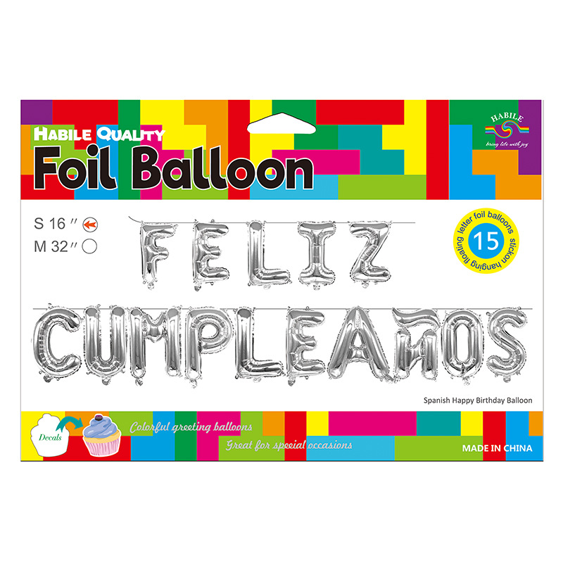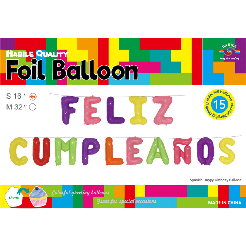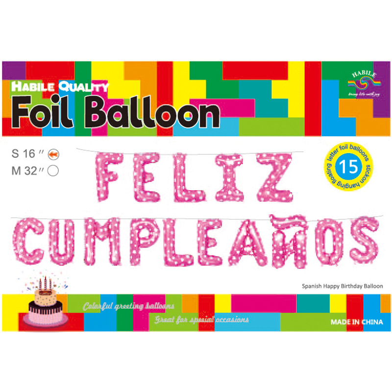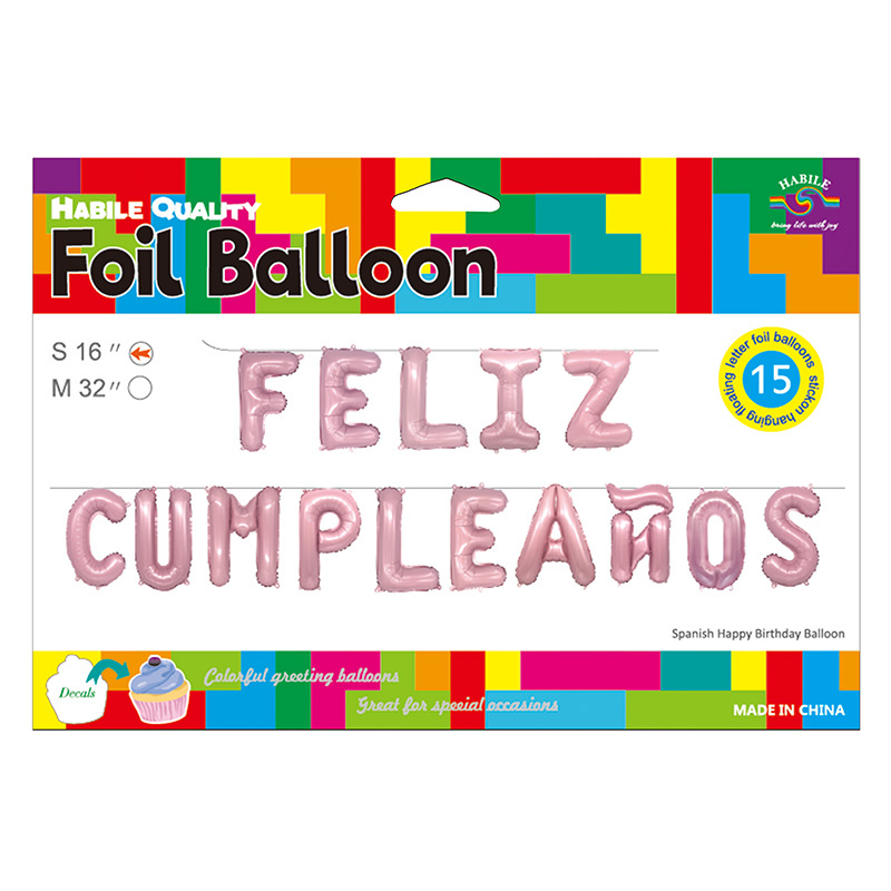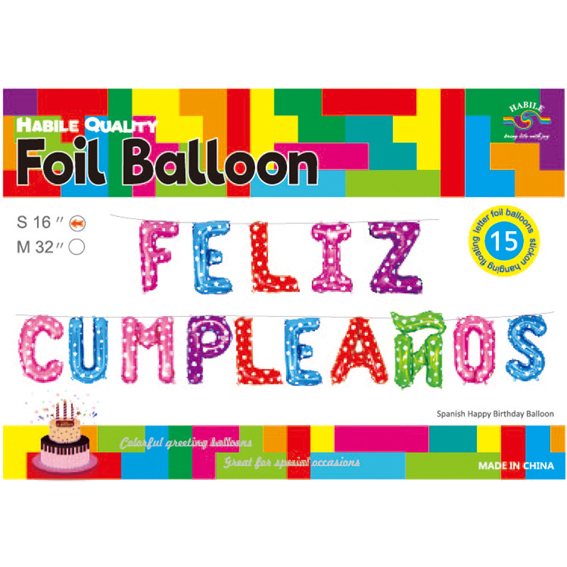 16 인치 스페인어 생일 축하 편지 알루미늄 필름 풍선 세트 FELIZ CUMPLEANOS 파티 장식 용품