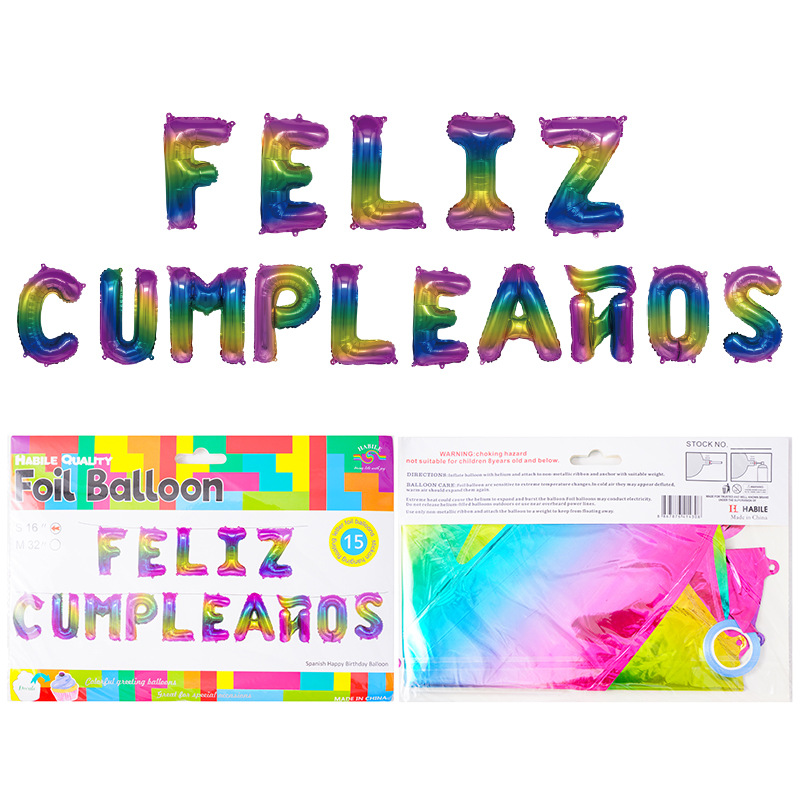 16 인치 스페인어 생일 축하 편지 알루미늄 필름 풍선 세트 FELIZ CUMPLEANOS 파티 장식 용품스토어 가기
