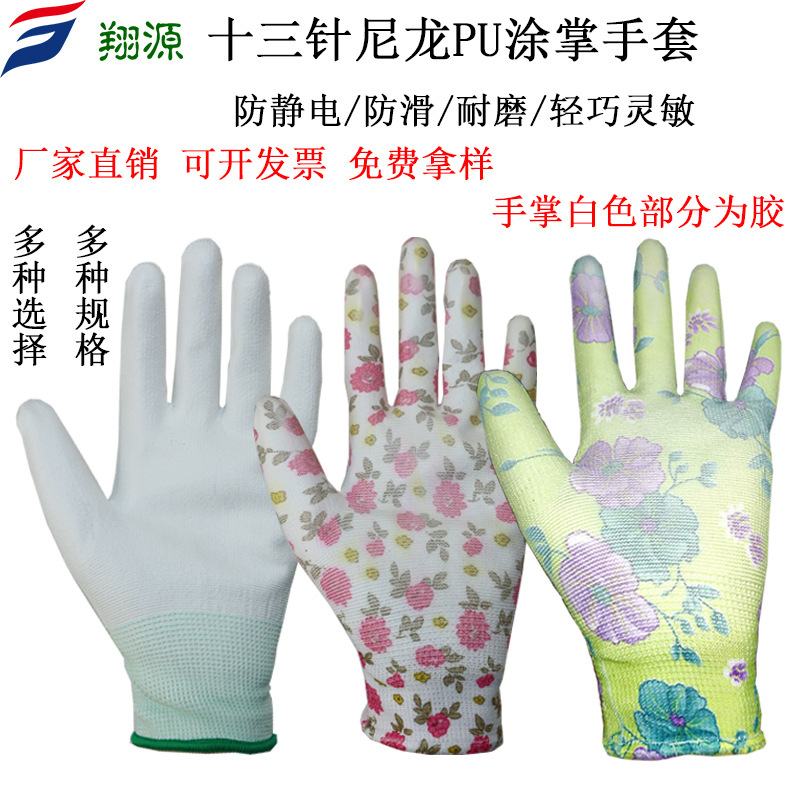 여성용 PU 코팅 노동 보호 장갑, 내마모성 건설 현장 나일론 정전기 방지 PU 코팅 손바닥 노동 보호 장갑, 얇은 스타일스토어 가기