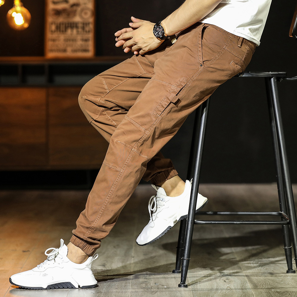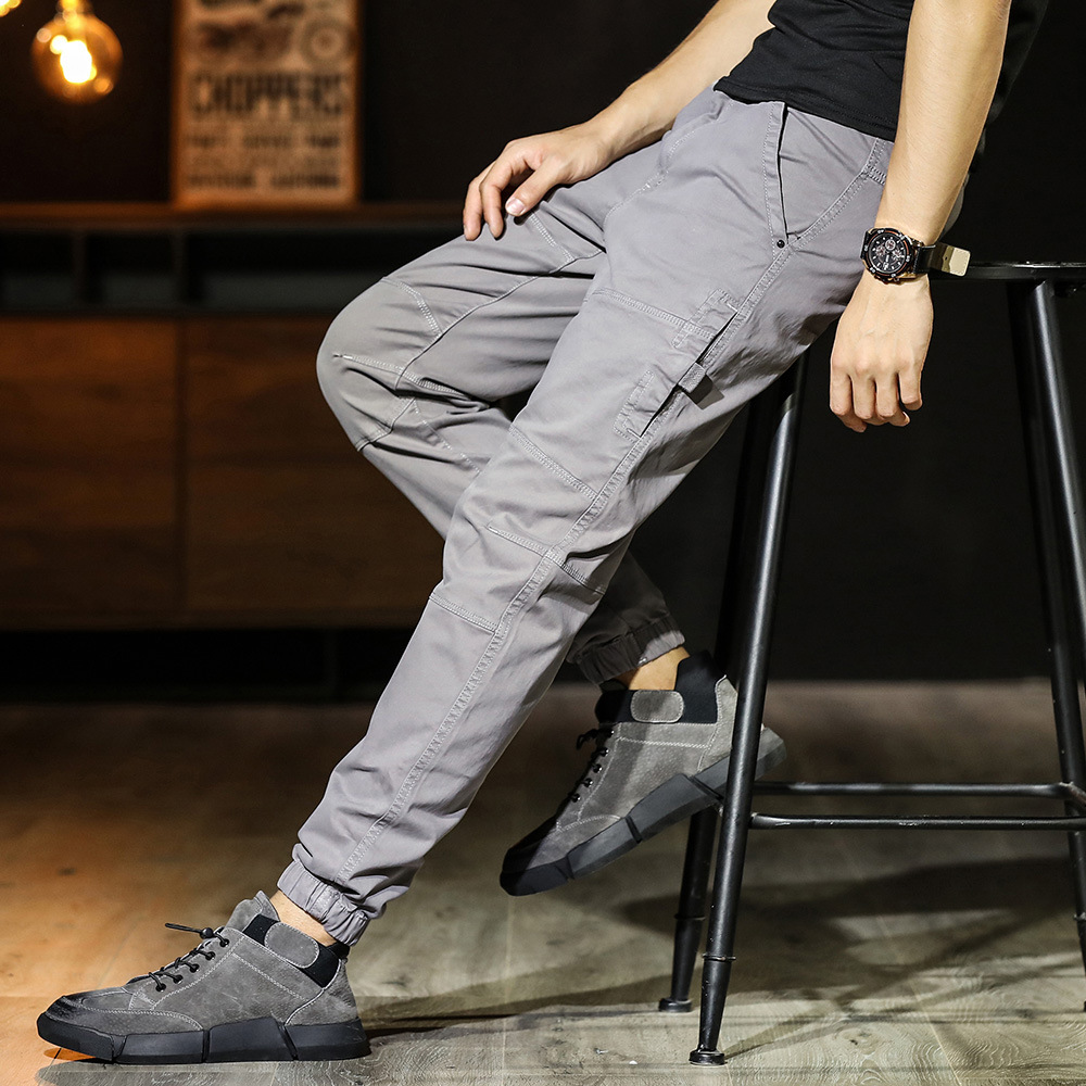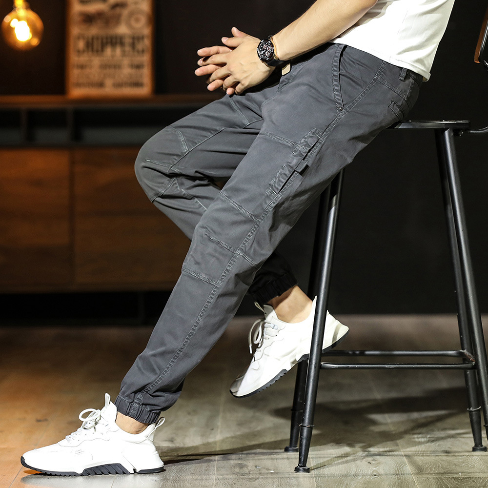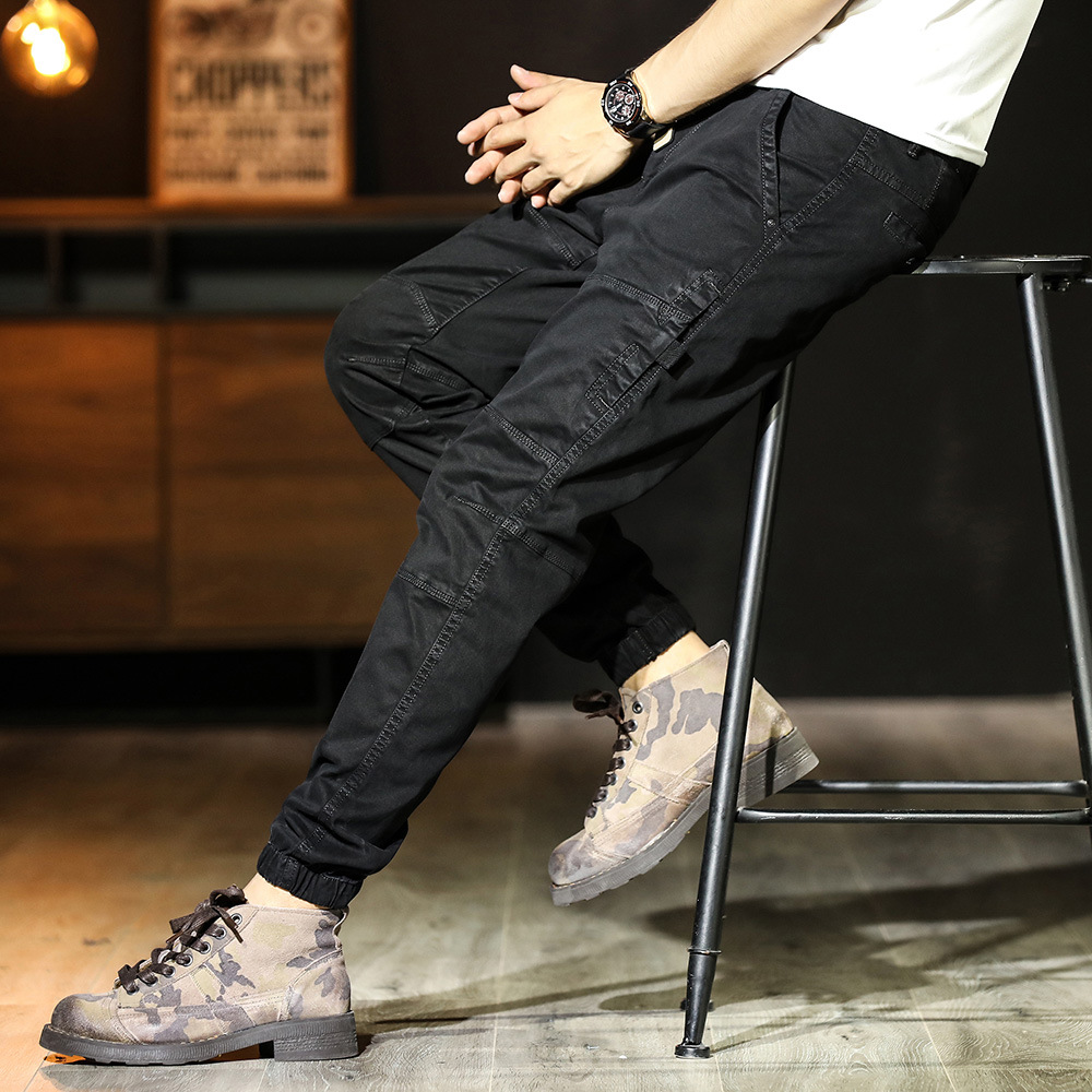 남성 캐주얼 바지 독특한 스티치 일본식 할란 팬츠 루즈한 모든 매치 트렌디 한 발목 묶음 바지 면 패션 스포츠 바지스토어 가기