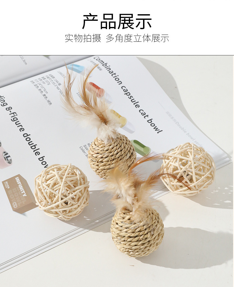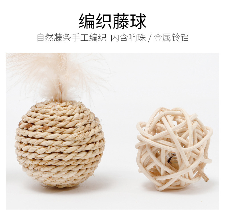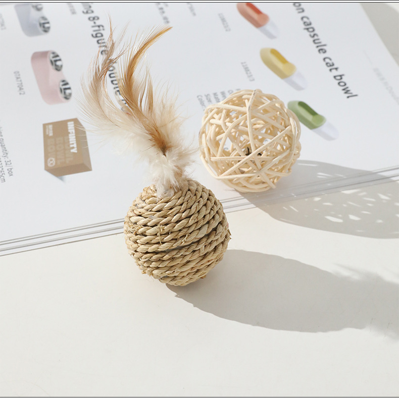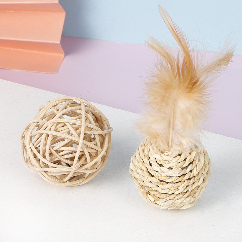 애완동물 장난감 공, 자가 놀이 및 지루함 해소, 식물 등나무 방울소리 공, 수제 이중 공 세트, 고양이 장난감스토어 가기
