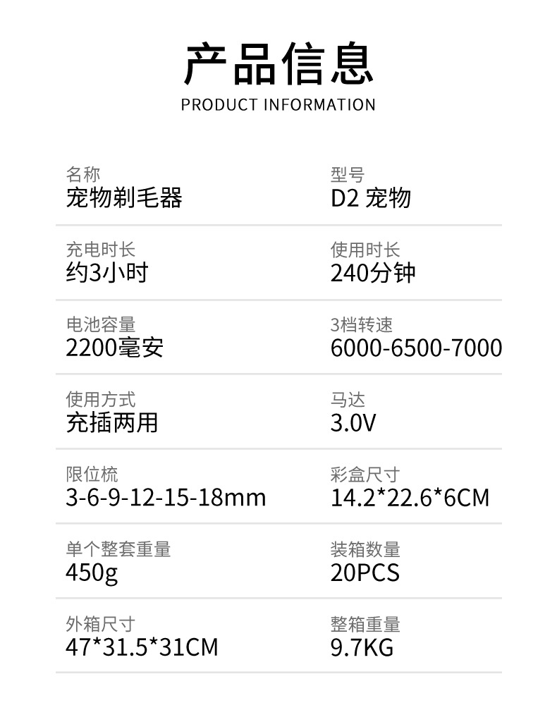 • D2 애완 동물 전기 가위