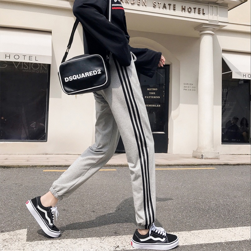 쓰리 바 트렌디 한 스포츠 바지 여성 2020 가을 겨울 신학생 느슨한 다리 슬리밍 남성 및 여성 캐주얼 스웨트 팬츠스토어 가기
