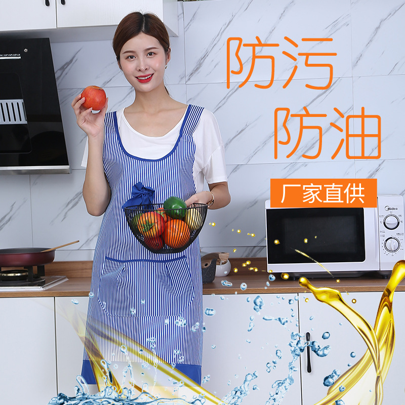 새로운 심플한 가정용 스트라이프 앞치마, 기름 방지 및 오염 방지, 폴리에스터, 프리사이즈, 민소매, 추가 포켓 포함, 가정용