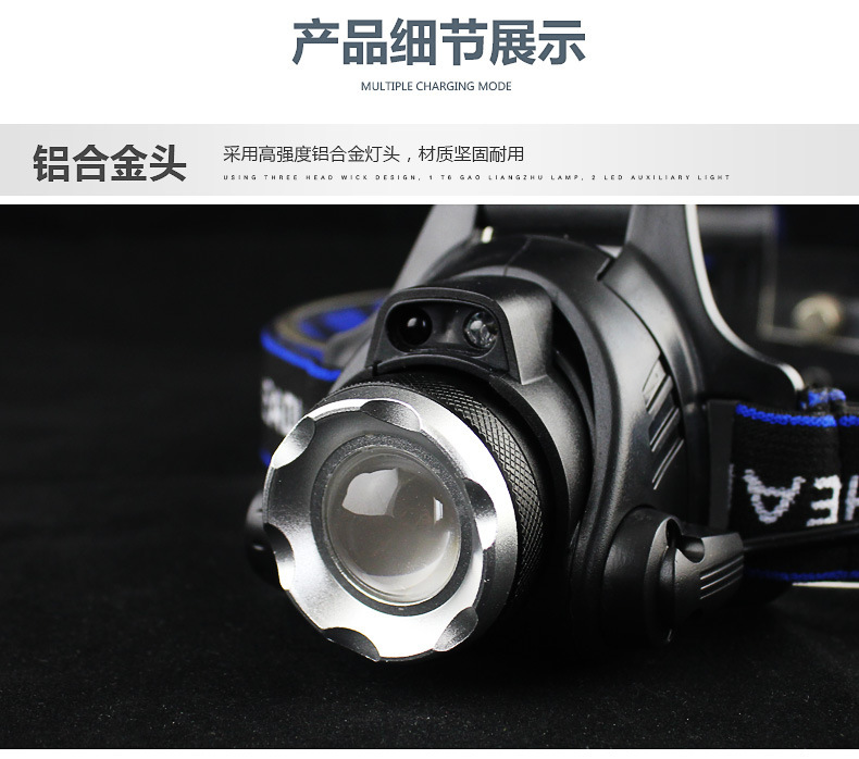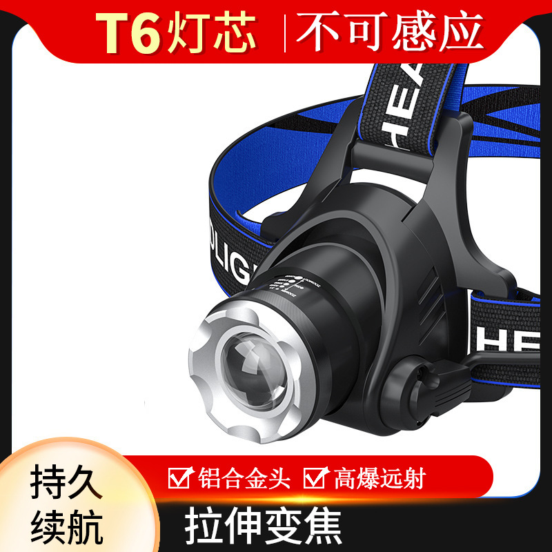 국경 도매 야외 낚시 헤드라이트 방수 T6LED 강한 빛 텔레스코픽 줌 헤드라이트 USB 충전 유도 헤드라이트스토어 가기
