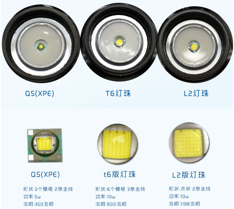 • 유도 없는 P50 램프 비드(18650 배터리 2개) 배선 색상 상자