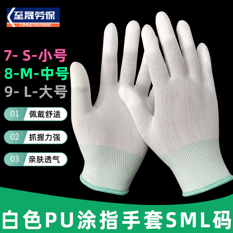 손바닥 코팅 장갑 손가락 코팅 장갑 SML789 코드 PU 노동 보호 장갑 흰색 정전기 방지 나일론 PU 손가락 코팅 장갑스토어 가기