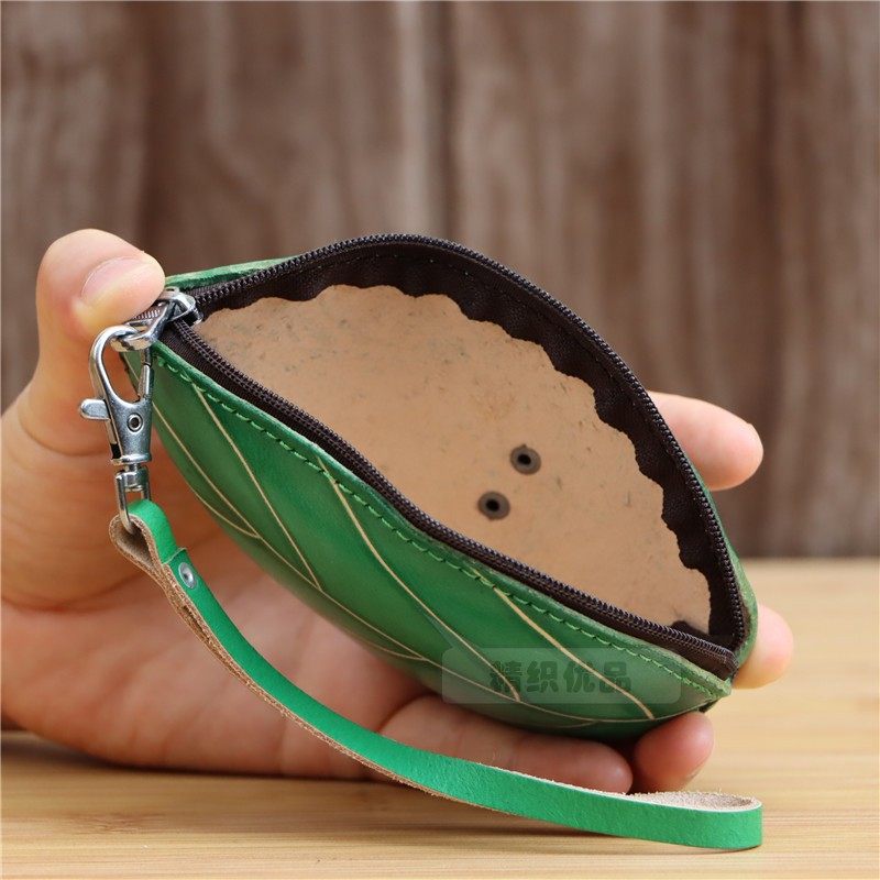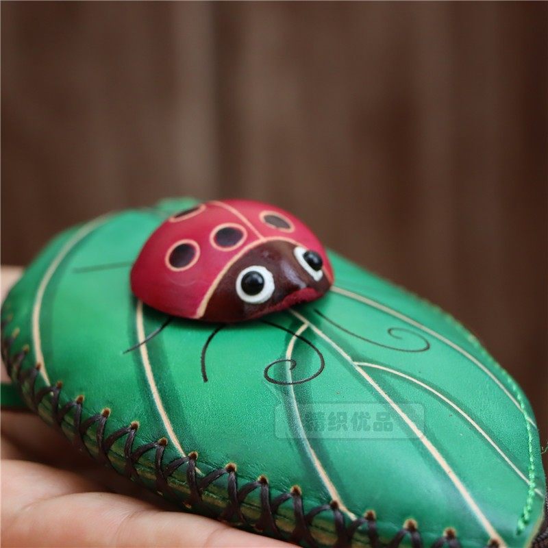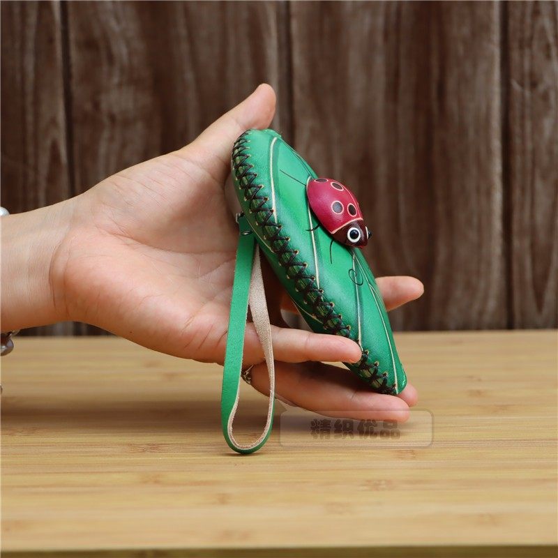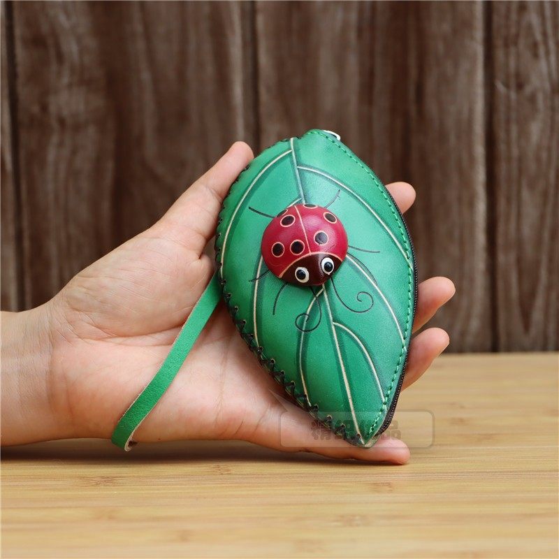 탑 레이어 소가죽 크리에이티브 잎 Coccinella septempunctata 미니 동전 지갑 트리 잎 키 백 핸드 백스토어 가기