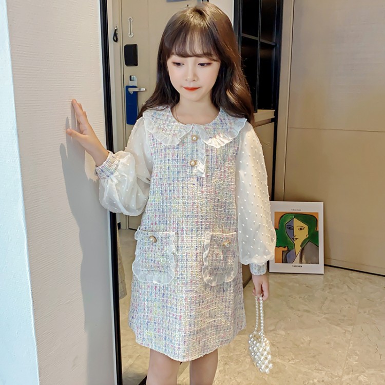 여아용 작은 프랑스 스타일 원피스, 매우 세련된 봄 가을 신상, 어린 소녀용 인형 칼라 퍼프 소매 레이스 원피스스토어 가기