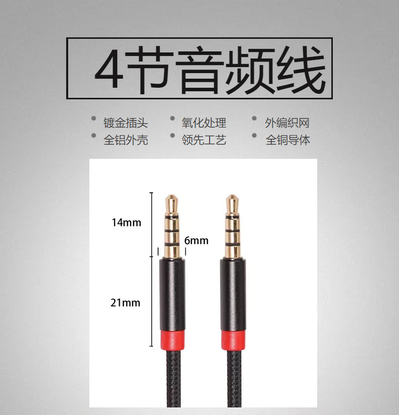 모든 구리 4 단 플러그가 마이크 3.5mm 수-수 오디오 케이블 지원 휴대폰 사운드 카드 4 단 오디오 케이블 지원