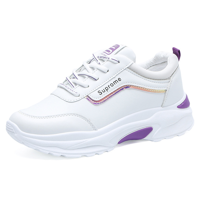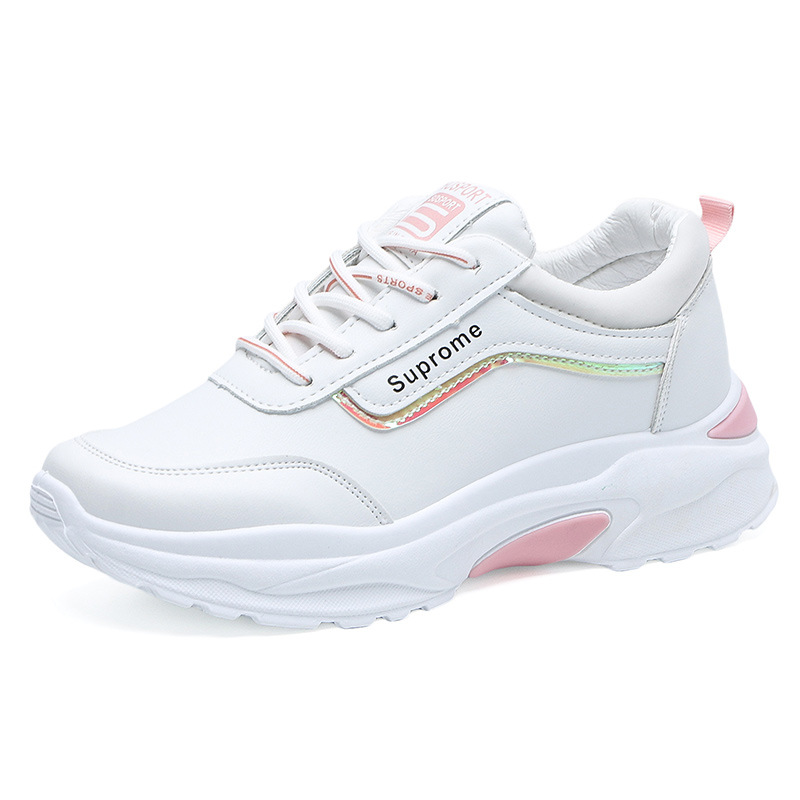 가죽 소재의 여성용 아빠 신발 2024 가을 신상 화이트 운동화 여성용 다용도 한국 스타일 학생용 여성 신발 심플 디자인