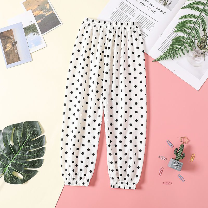어린이 모기 방지 바지 소년과 소녀를위한 여름 얇은 통기성 물방울 무늬 블루머 큰 바지 아기 바지 유행