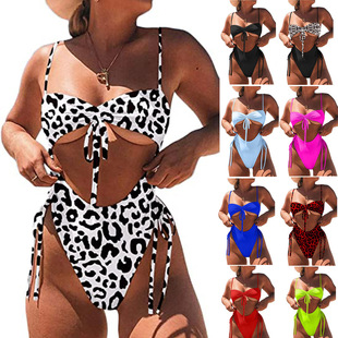 牧之泳衣2021新款比基尼连体纯色彩绳比基尼性感亚马逊泳装 RMB:30