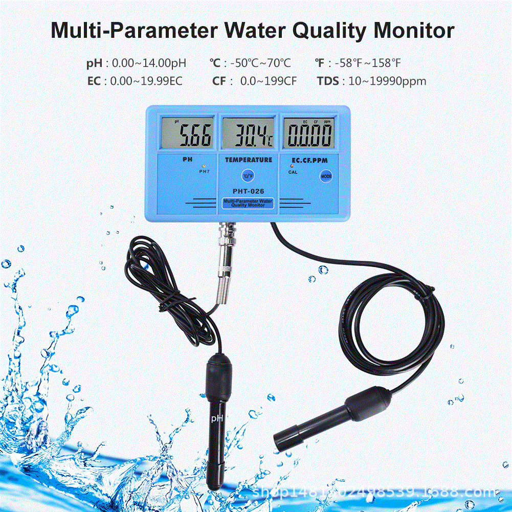 PH-026 수질 탐지기 PH 미터 pH 미터 온도 EC 전도도 CFTDS 어항 수영장 온라인 모니터링