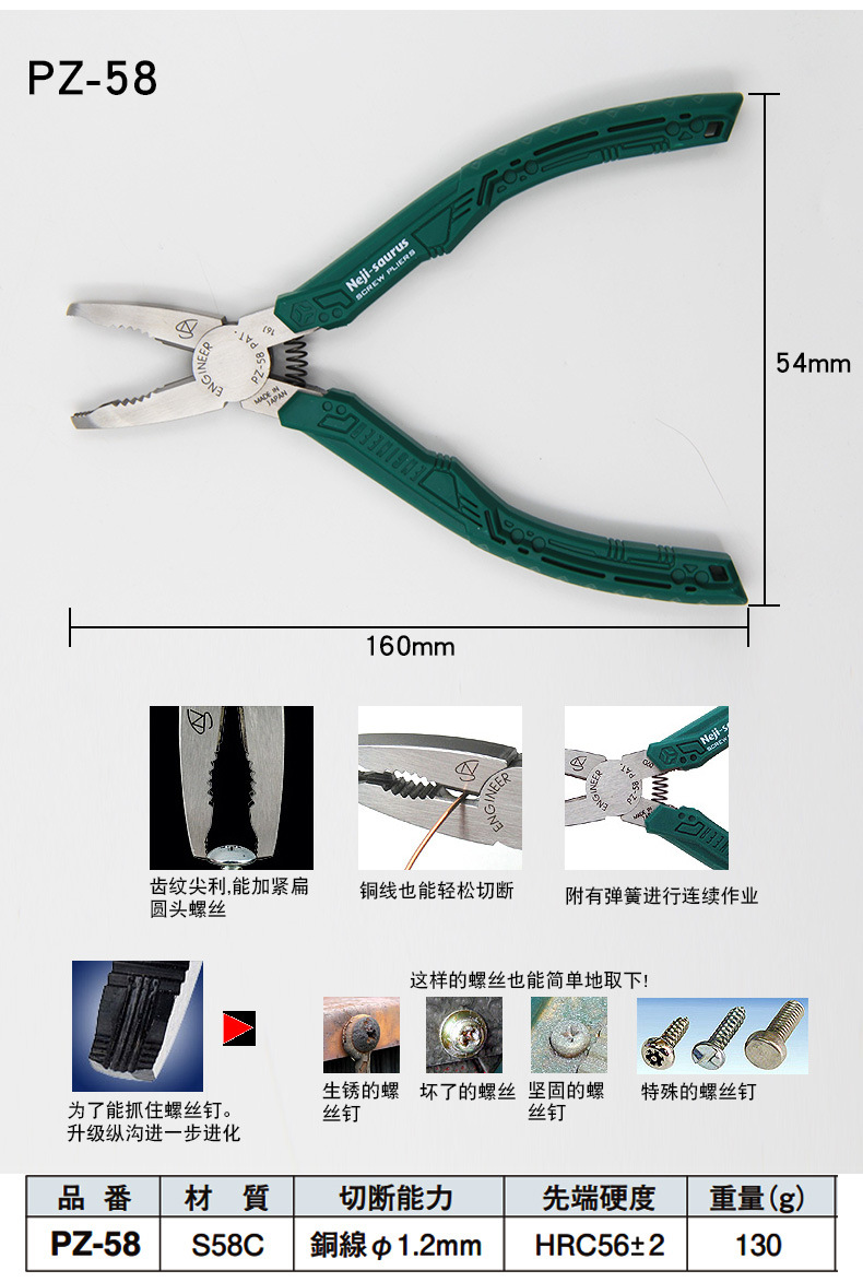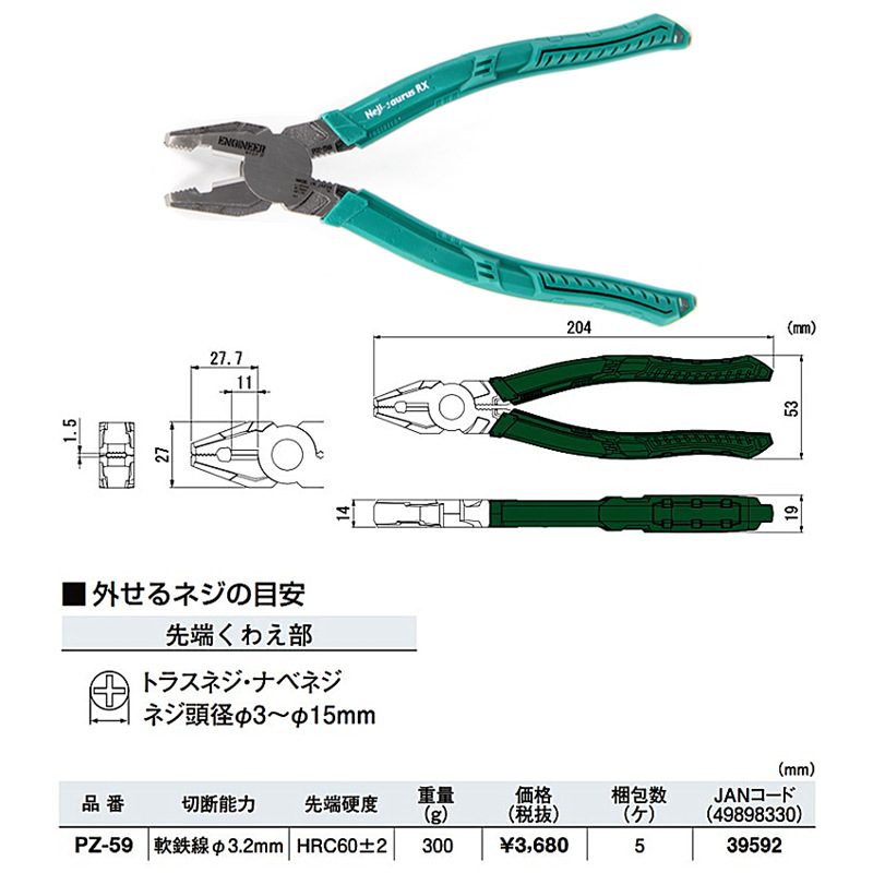 • 일본 엔지니어 PZ-59는 3-15mm 나사를 조일 수 있습니다.