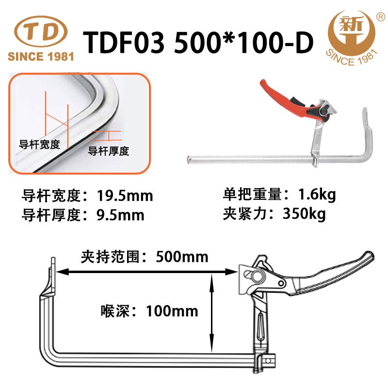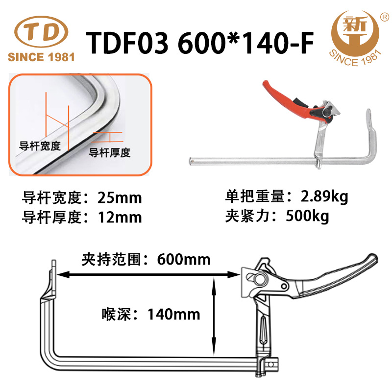 Tianda Xinggong 공장은 TDF03 레일 고정 클램프, 목공 클램프, F형 클램프, 단조 F 클램프를 공급합니다.