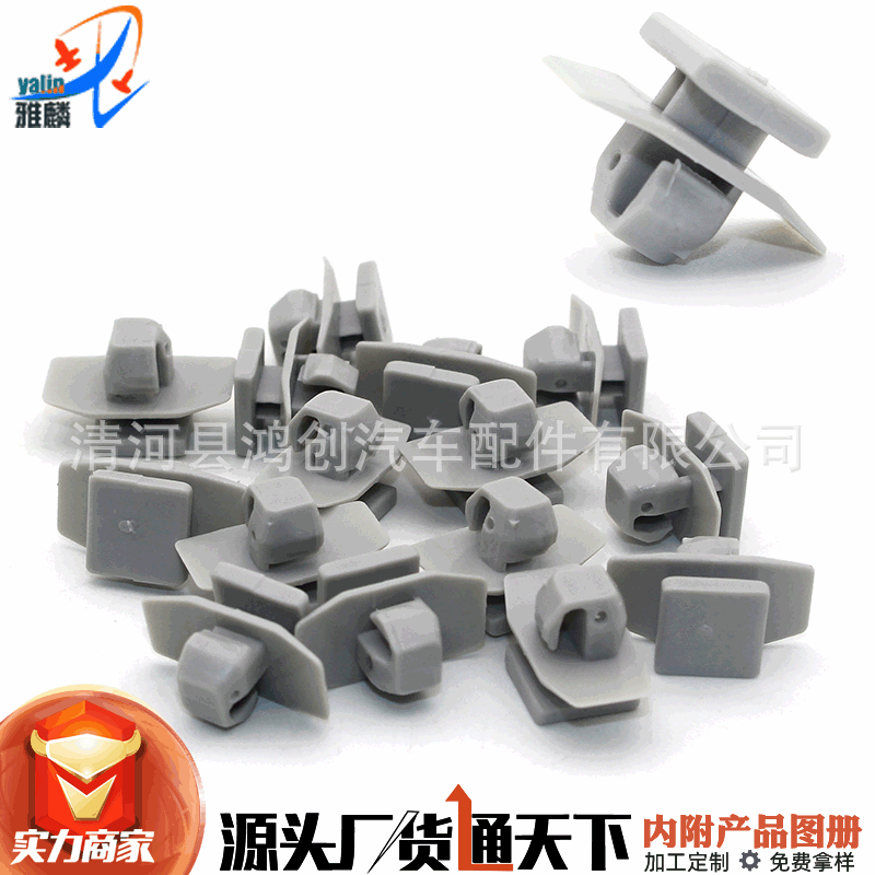 汽车位置用卡扣;汽车顶棚卡扣丰皮铆钉;内饰板卡扣;门饰板卡扣;护板卡扣;底边梁卡扣;座椅卡扣固定卡子;灯扣快丝座子贡螺丝;汽车锁扣;流水条卡扣;后备箱卡扣;叶子板内衬卡扣;机盖隔热板卡扣;隔热棉卡子;密封条卡扣;轮门卡扣;支撑杆卡扣;玻璃托卡扣;玻璃扣;脚垫卡扣;子母扣;双合扣;压条卡扣;保险杠卡扣(前杠 后杠);中网卡扣;机盖扣;穿芯钉;穿心钉;窗帘扣;地板扣;地毯扣;水管卡;油管卡;线卡;德式卡箍;美食喉箍;强力水管卡子;喷水嘴卡扣;压条钉;门提;门保险;开尾销钉;膨胀扣;膨胀螺丝;螺丝扣;膨胀螺丝扣;抽芯钉;胶墩;衬套;金属叶子板螺丝;铁片;螺钉;螺母;铁卡子