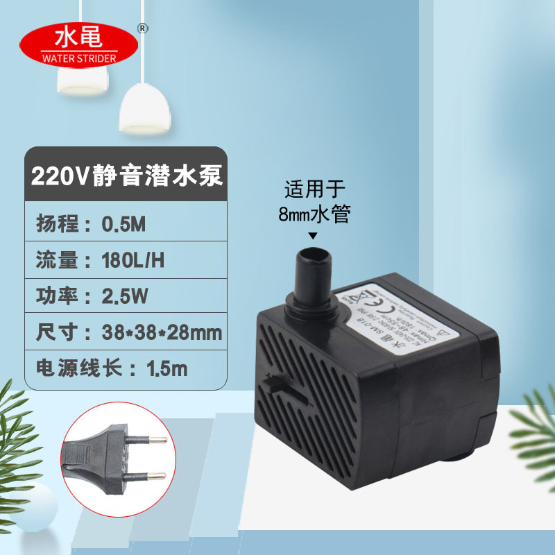 我司拥有自己的品牌“水黾”(shuimin)。水黾是水生半翅目类昆虫, 半翅目,黾蝽科。学名Aquarlus elongatus,栖息于静水面或溪流缓流水面上。身体细长,非常轻盈,长着具有油质的细毛,具有防水作用.正是因为这种特质,我司以水黾名字命名潜水泵的品牌,就是想让产品的品质能做到和水黾一样,潜入水底时能全面防水,平稳,安静。浮出水面时能快,猛。这也就是水陆两用潜水泵扬程和流量要求的特性所在。