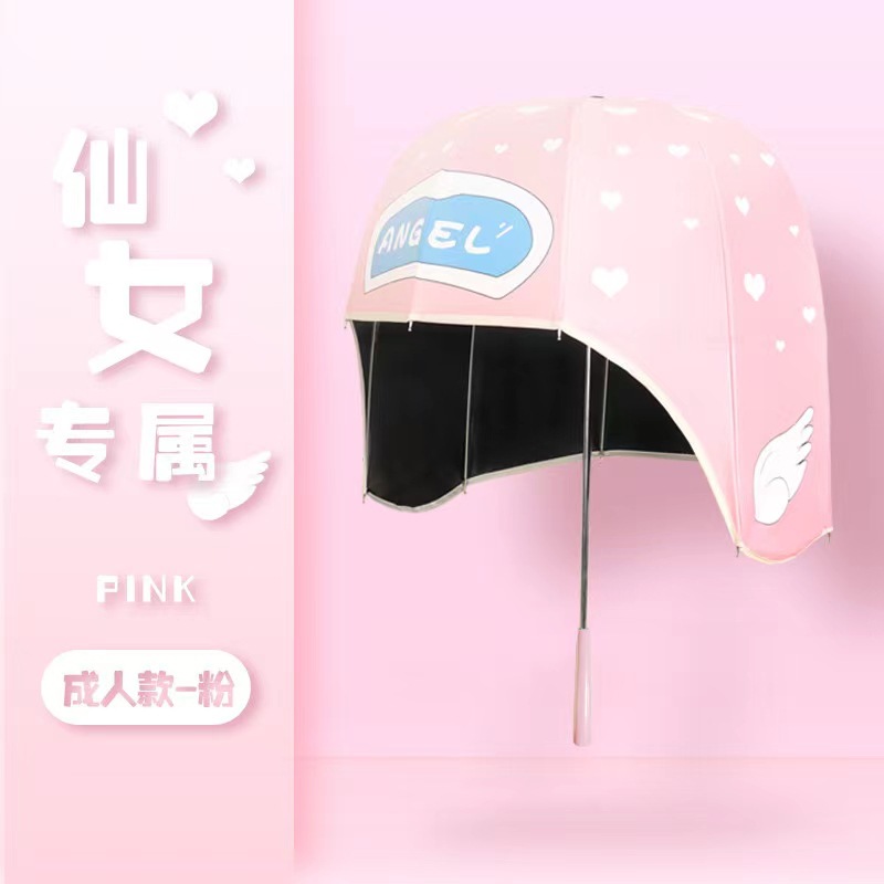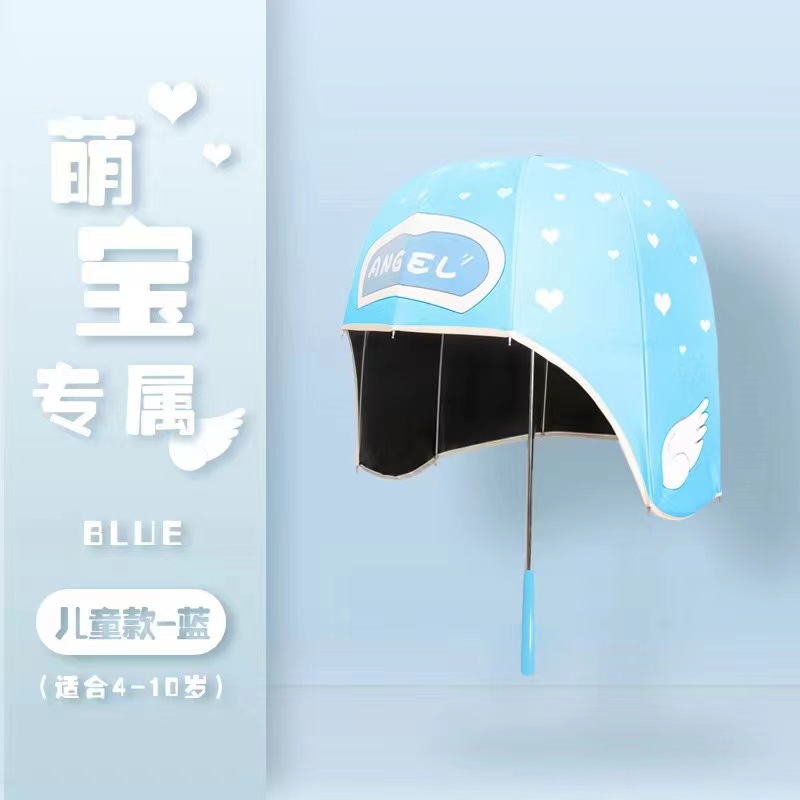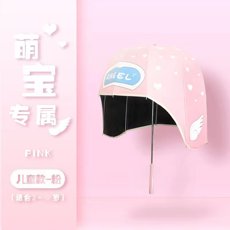 晴雨两用伞女跨境新颖儿童成人伞 厂家销售黑胶防晒头盔帽子伞定制